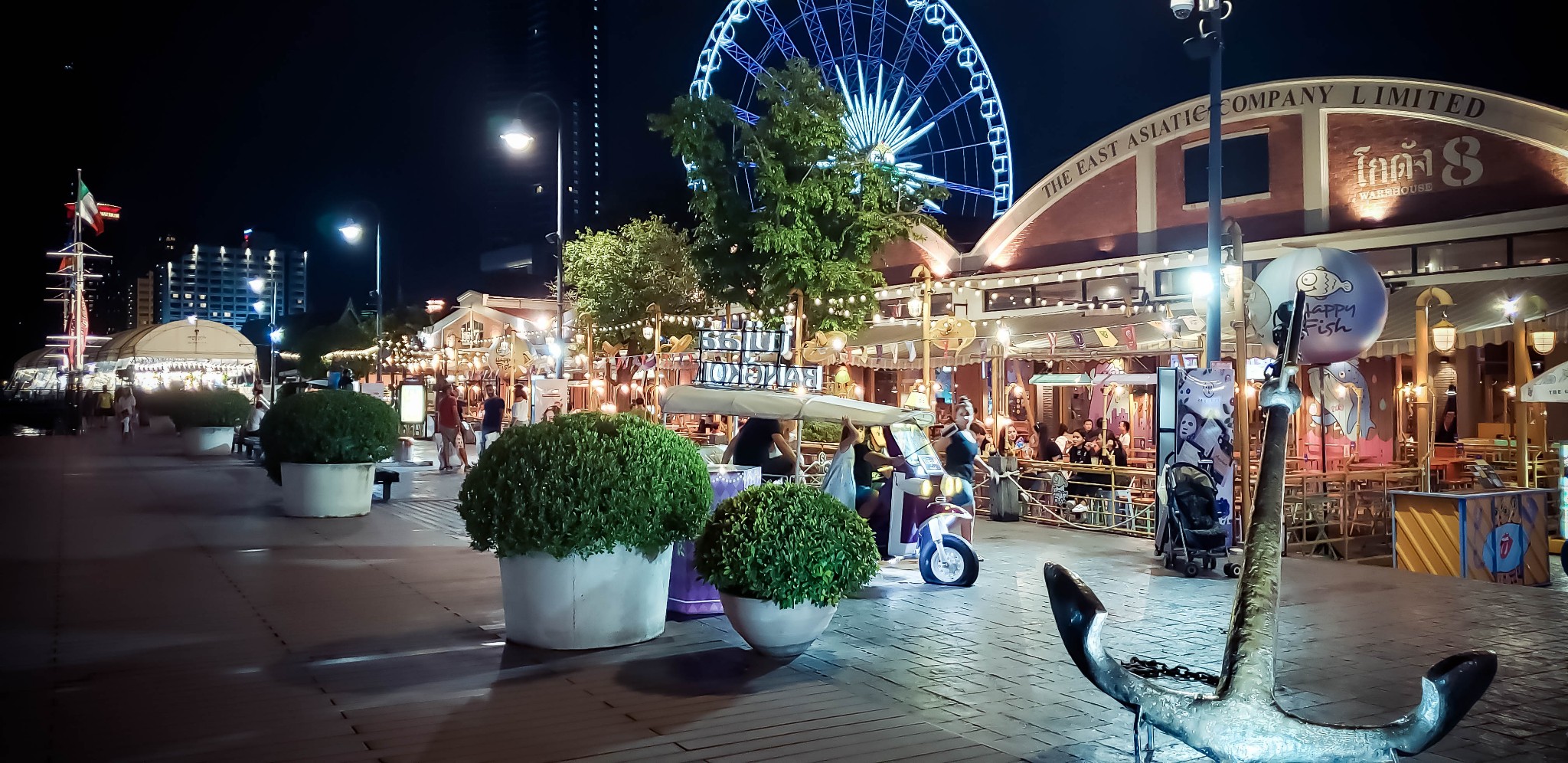 摩天轮夜市又叫河畔夜市,是沿着湄南河而建的,夜市中央有个不是很大的摩天轮。