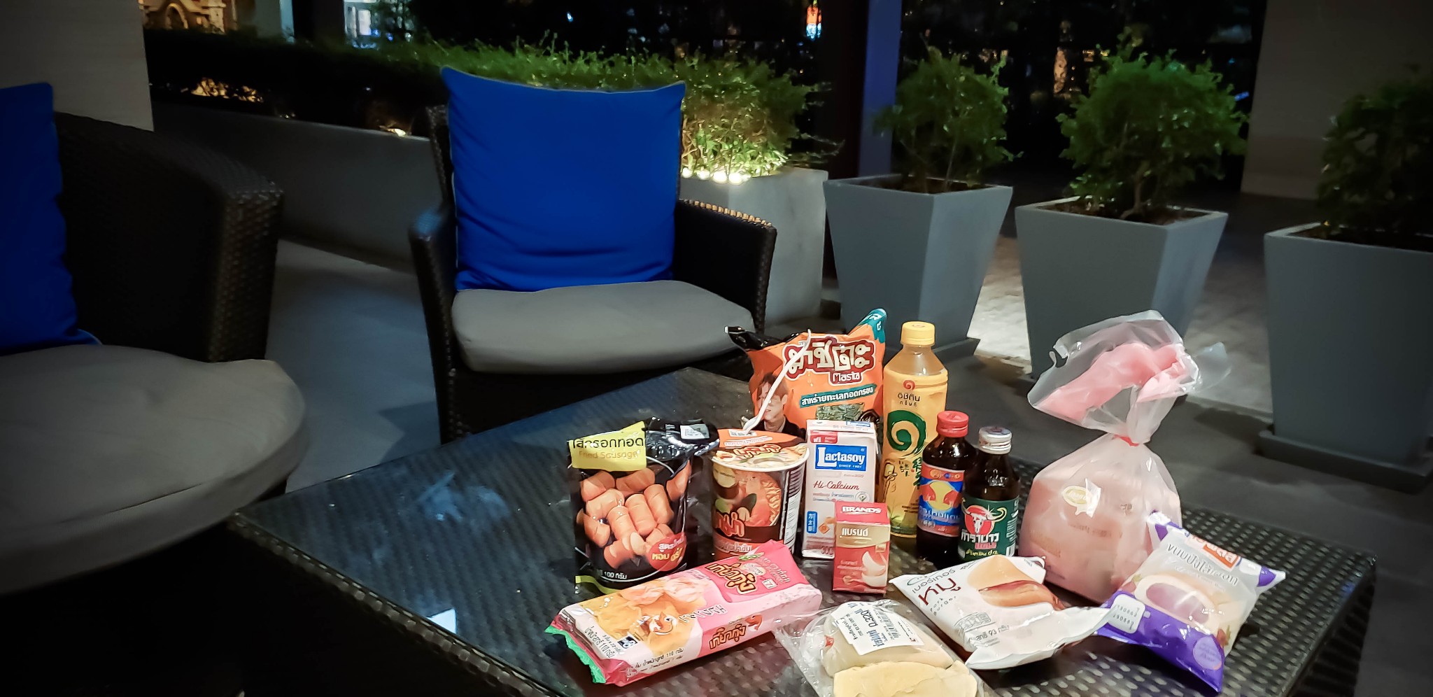 回酒店之前,又打卡了711。 左下角的那个蟹棒是我每天比吃的零食,好像是39泰铢。 蟹棒的包装里还有一袋酱油和芥末,配上这个蟹柳无比美味。