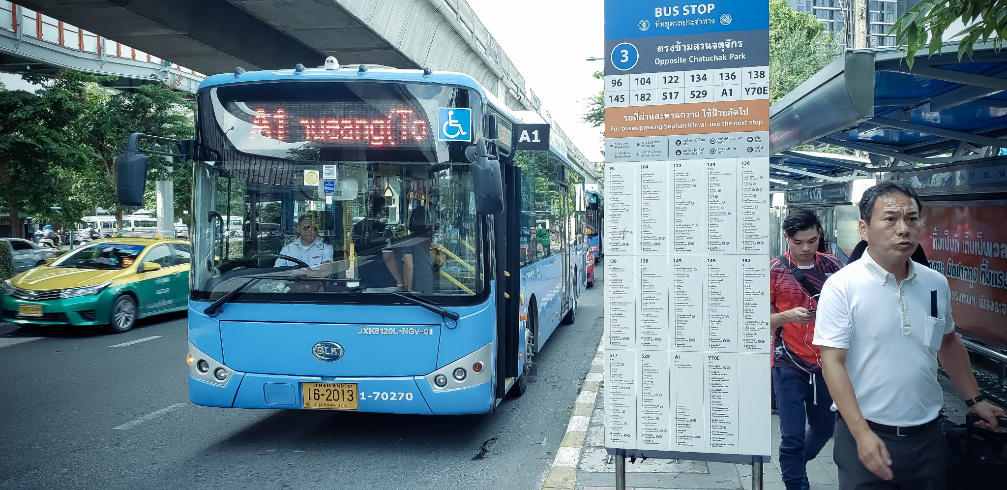 我到达的是廊曼机场,出了到达层的大门。乘坐A1大巴就可以到MO CHIT换成BTS啦! 上车买票,售票人员会拿这一个非常复古的长桶形工具售票,很有意思。