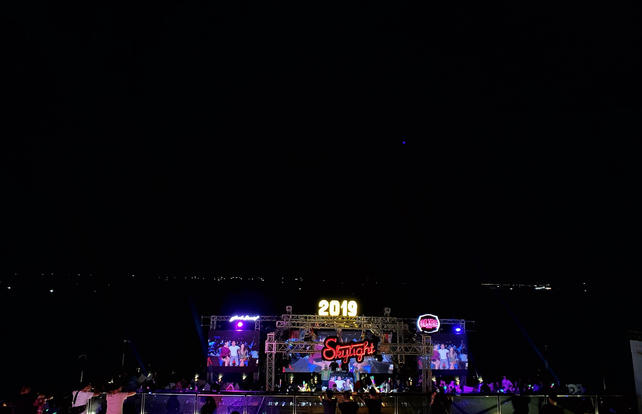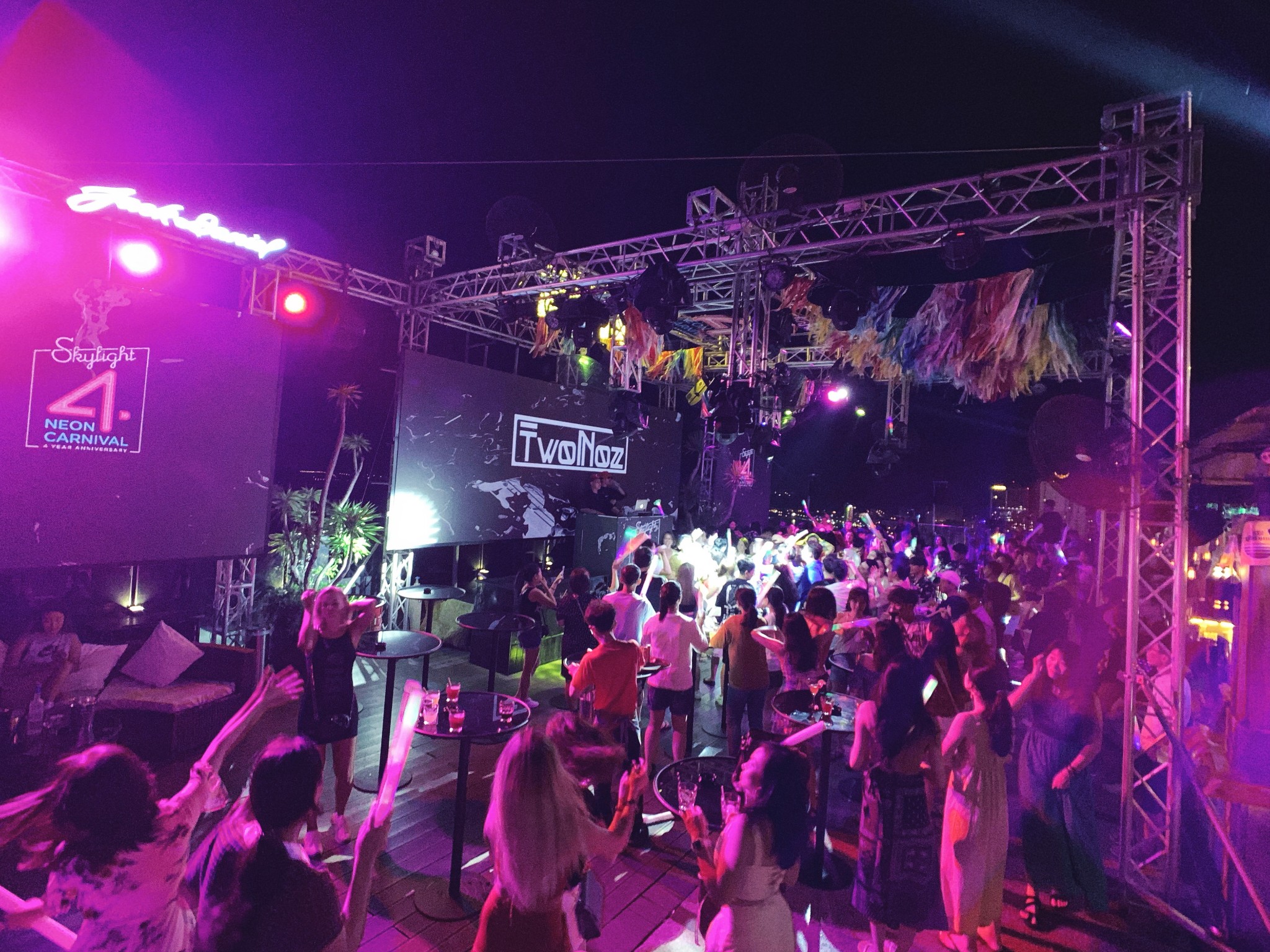 我们到酒店,爸妈带着大王很快就洗洗睡了,而我.....嘿嘿!顶楼《skylight》走起! 人气不错,风很大很舒服!扫了一圈, 中国 人占绝大多数,然后就是 俄罗斯 姑凉、外加还有几位帅气的 韩国 小哥哥!可以哟! 但说实话,气氛是还可以,但从硬件上来拼、还不如 南昌 的“LIFE”,而且放的音乐全是“抖音神曲”,但在异国他乡、又有这么多国外友人,还是无敌海景、来吧!嗨起来! 上来这里是需要买门票的、每人差不多80元RMB吧!而且只有一部电梯,上来真的需要排长队等电梯! 而且搞笑的是:我没吃晚饭,总以为不像 南昌 酒吧有炒粉、鸡脚、鸭脖什么的,怎么滴也会有小吃类薯条鸡翅什么的吧!~? 不好意思!犀利都冇有! 干喝!!!