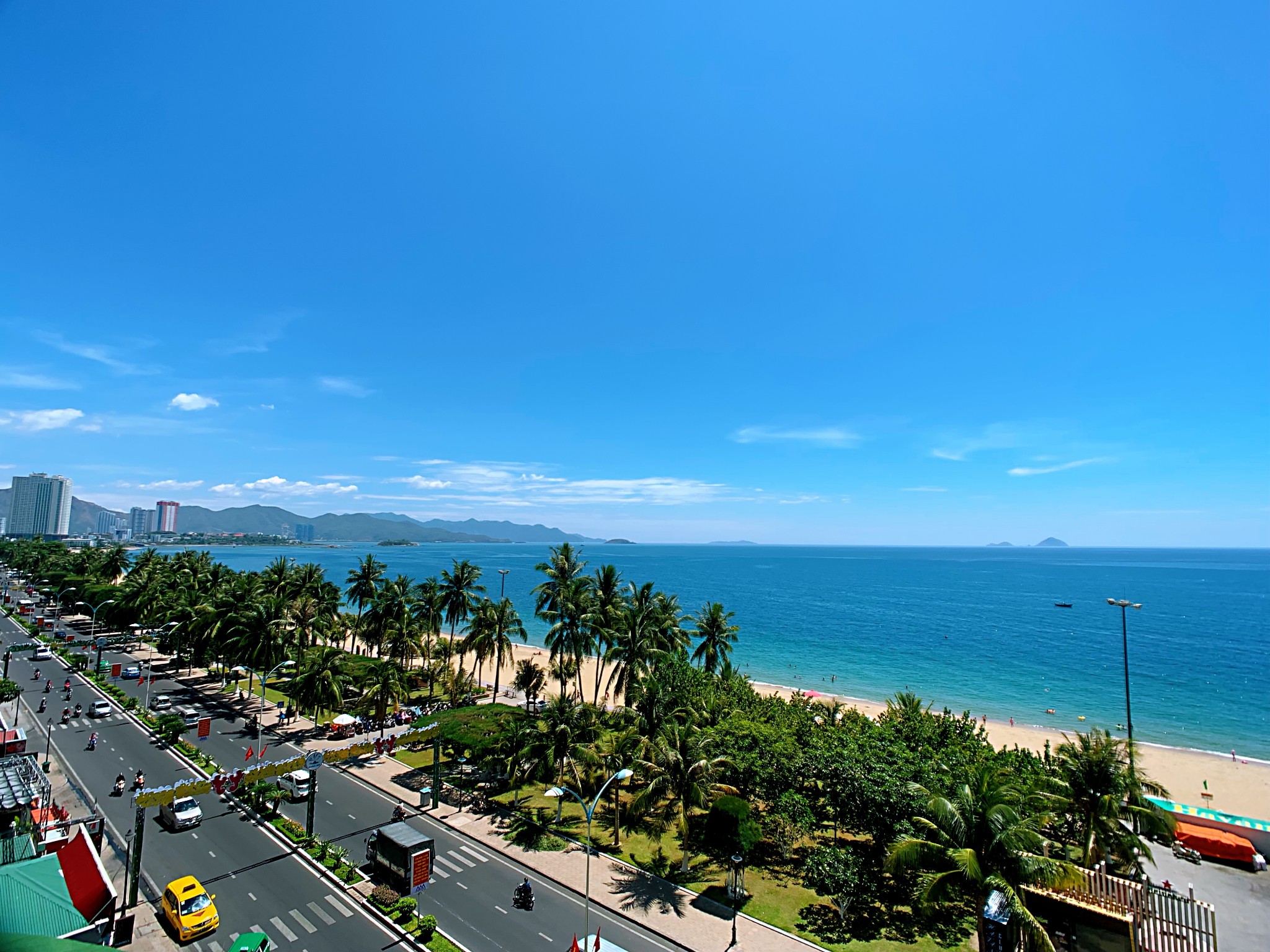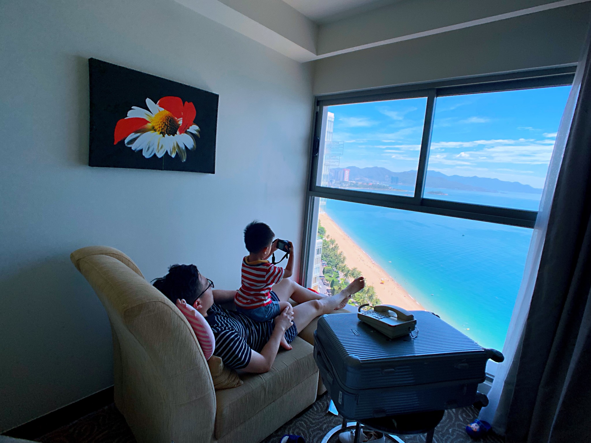 早晨起来拉开窗帘的那一刻,你才能发现这间房的view,因为晚上看海景很瞎好吗?! 相比于很多朋友去 越南 芽庄 说什么海水很脏,嗯~~~不会哦!当然你别去跟什么 马尔代夫 比好吗?~脏、谈不上! 酒店房间里面的设备不算最新,但也不旧,依我来看的话,我觉得设备方面次于洲际,但就是顶楼那个网红酒吧加了分! 但也有弊端:我昨晚回到房间,依稀还有咚起哒起的酒吧音乐,听得到,说明楼上有多嗨了!!!