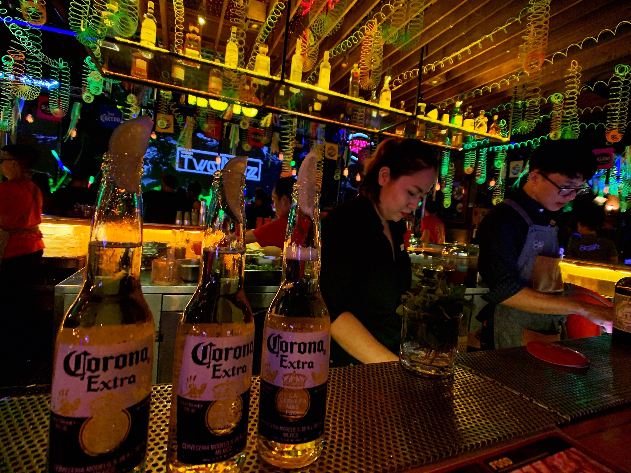 到了半夜,想想明天就要登上珍珠岛了,回市区就没那么方便了,如坐针毡啊哈哈哈。搜索到酒店对面,海滩边的“Z CLUB”是 芽庄 排名第二的酒吧,那还得了!酒店楼上的“skylight”排第一去过了,那第二的也顺便去下吧! 果然嗨吧一家,但不同的是这里的老外更多,超多!在舞池里扭动的几乎都是 俄罗斯 姑凉,看来这座城市很招 俄罗斯 年轻人喜欢啊! 当晚的DJ是个女的,哎哟喂,喊的唱的那个卖力啊,当然....她自己也“嗨得其所”,歌终于不是抖音的了,很有质感,这里同样进来除了买酒之外也是要买门票的。夸张的一瓶铝罐百威 南昌 卖25吧,这里卖150,好家伙! 回酒店洗洗睡吧,明天要搬酒店了-----去珍珠岛咯!