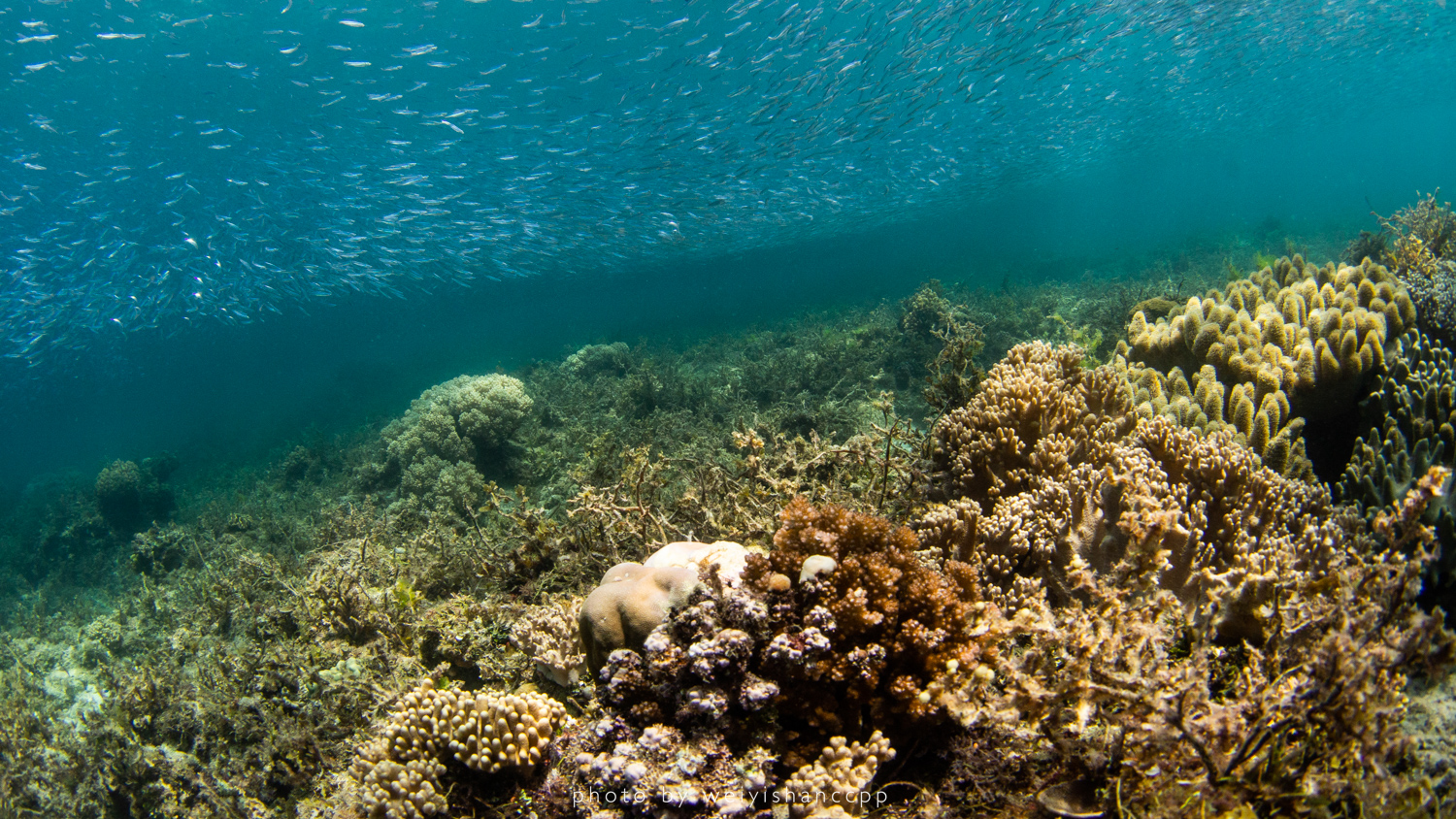 在以前,水肺潜水都是坐上一艘较大的船,开上个20分钟半个小时才会下海,但是这一次只开了三分钟,离岸边只有几十米,教练就说我们可以下去啦。 薄荷岛 整个岛都是珊瑚断层,所以只船只需要开出不远就可以观赏到美丽的珊瑚,潜下去吧!