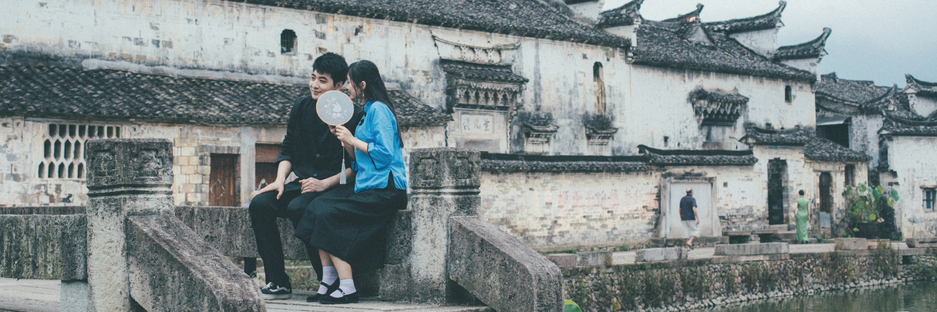 悠闲的老人们, 或是在街边看些发黄的书, 或是聚集在一起喝茶打牌, 他们平静地生活着,守望着这最后的古老, 水上众多石桥连接两岸的往来, 建筑风格传承了典型的 江南 水乡特色。