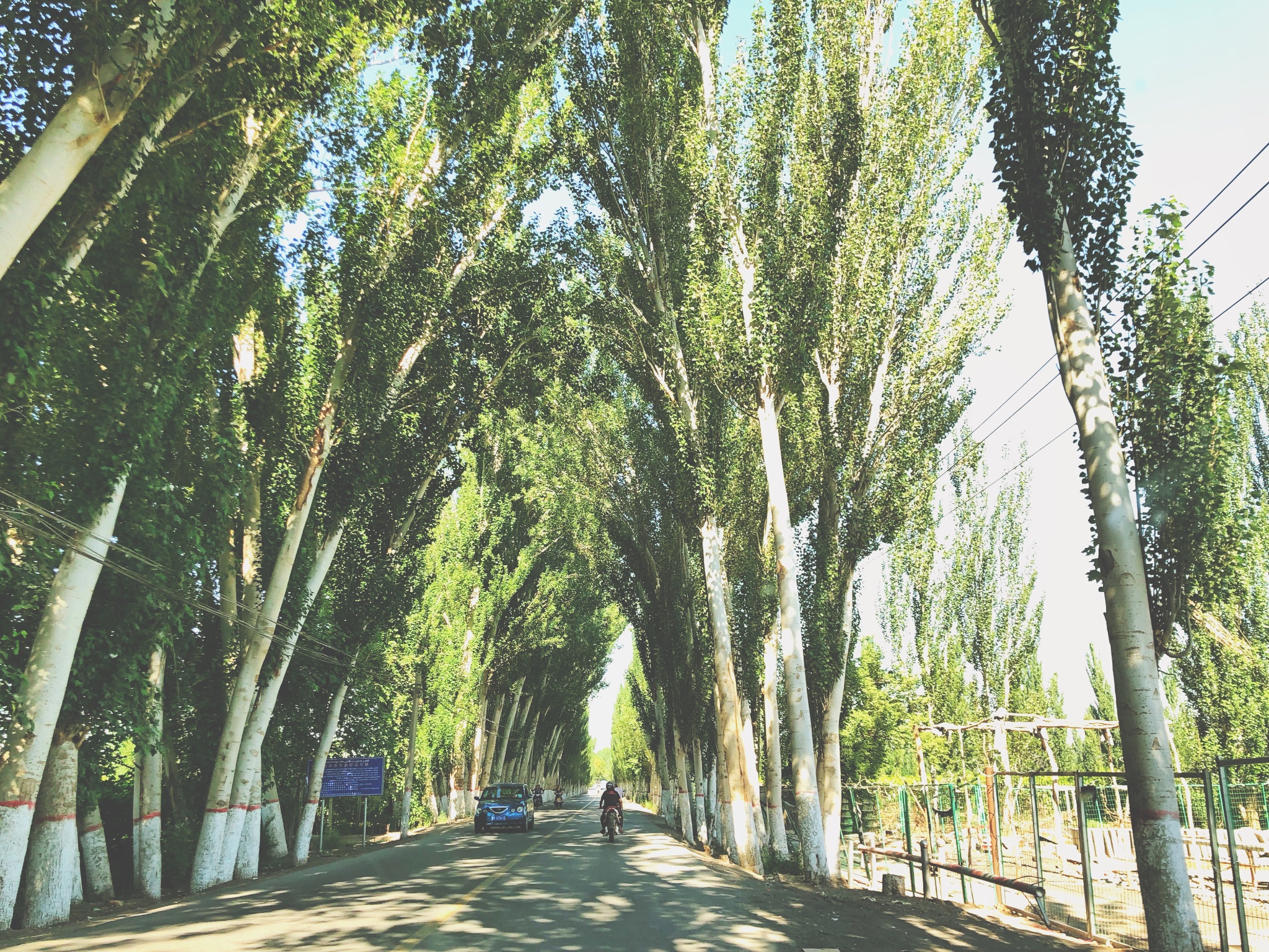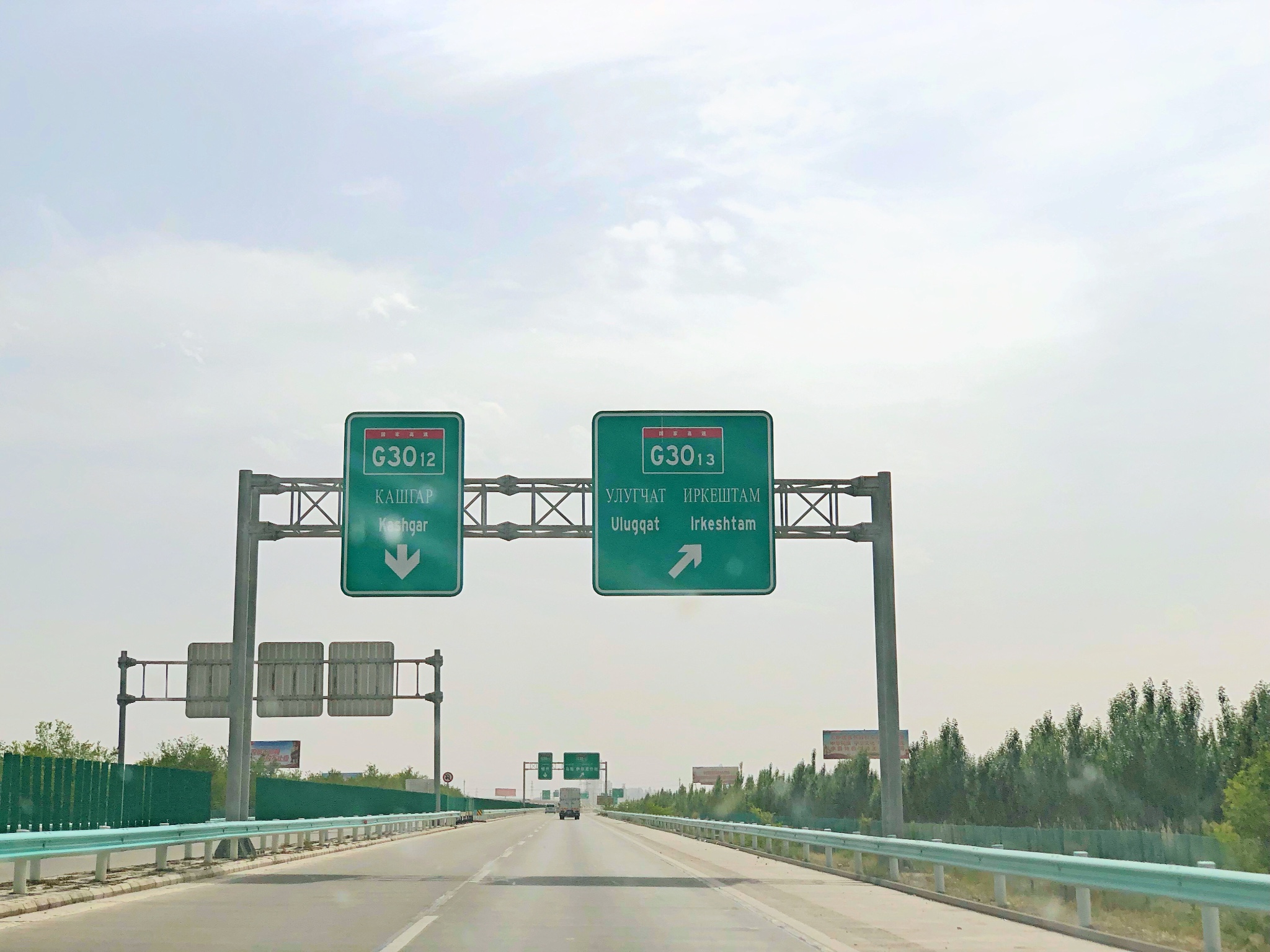 行程: 库尔勒 ——土和高速—— 库车 294km 3h40min 库车 ——土和高速—— 阿克苏 252km 3h5min 阿克苏 ——土和高速—— 喀什 466km 5h20min 概述: 有了目标,更容易把所有的精力和情绪聚焦在一起。讨论的中心话题变成了对 喀什 的幻想,也不得不承认,经过前几天接连而至的绿色、蓝色等雄浑画面的不断冲击,此时的我们已经有些许审美疲劳,急需另一种风格来刺激我们的肾上腺素,希望 喀什 可以满足我们。于是,车子一路高速,经 库车 、 阿克苏 ,两天干到 喀什 。 从 库尔勒 往 喀什 开的这段路地理上划分已经属于 南疆 了,沿途的风景也划分得很清晰。在 北疆 的路上,沿途多草原、田野、树林,连山上都是大片大片的绿色;而 南疆 的沿途荒凉许多,土黄色是这里的主色调,稀稀拉拉的灌木丛宣示着生命的不可侵犯。 这段高速开着难免无聊,半小时看不到一辆车子是正常状态,偶尔的横风却让人不敢松懈。切实见到过这些,更容易理解“绿色象征的希望”是具有现实意义的。
