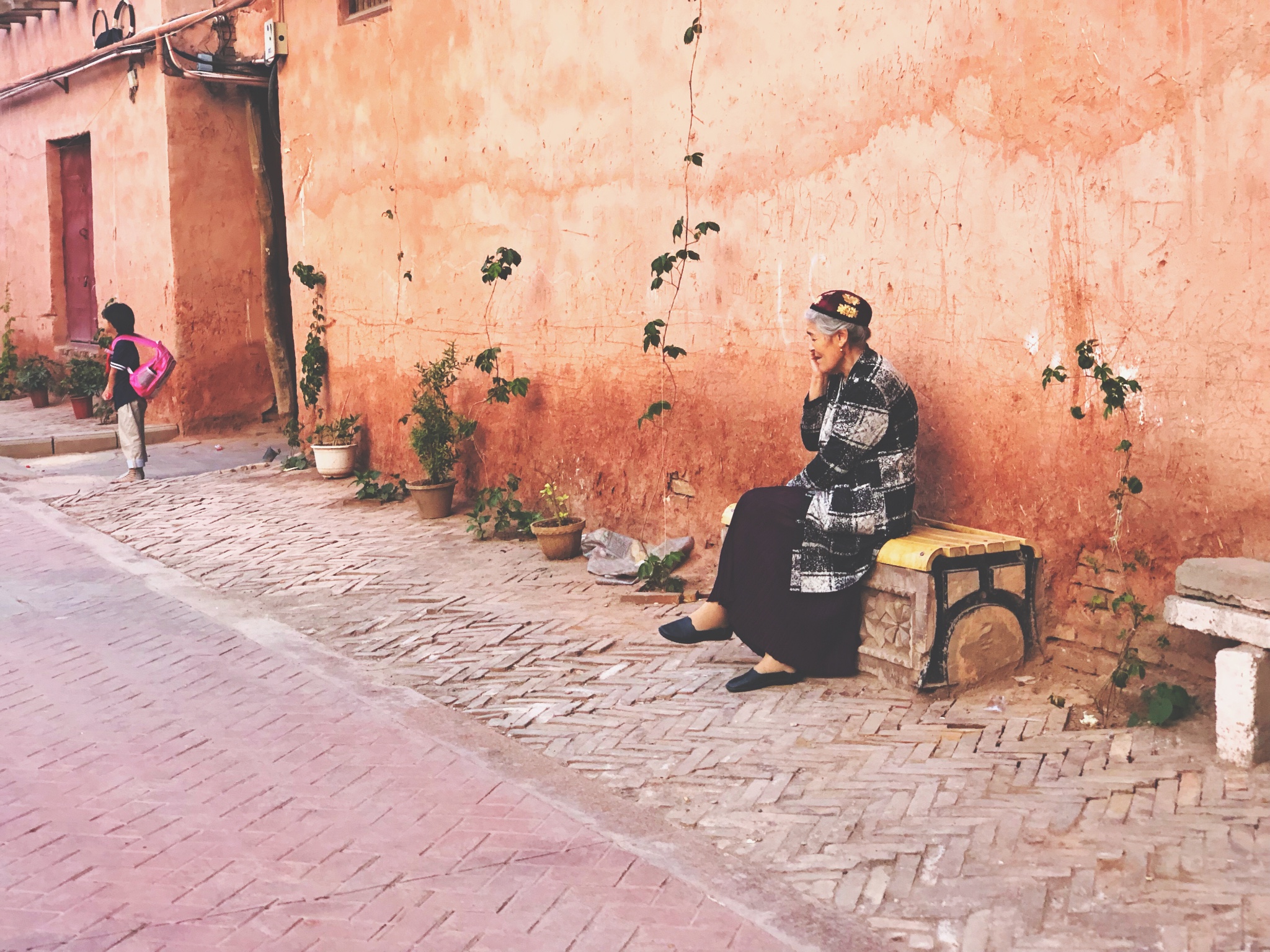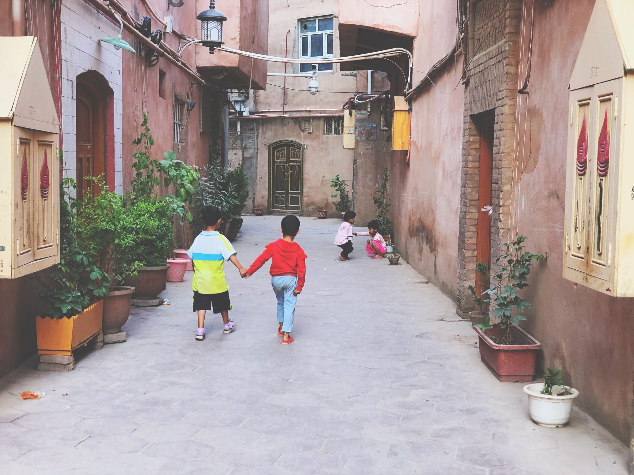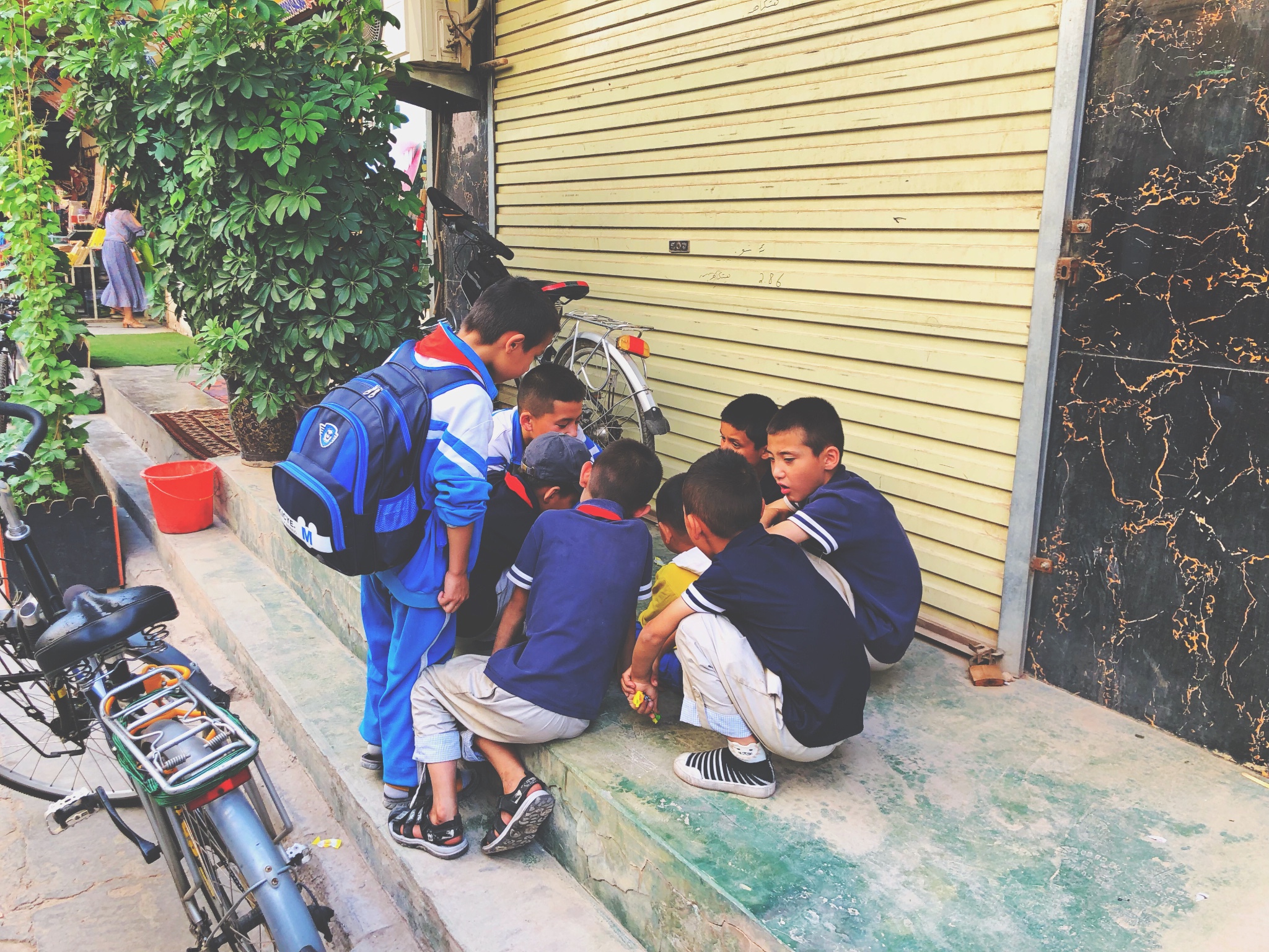 近几年的游玩经历中,确实去过一些“古镇”、“老城”。然而,有的“古镇”已经被翻修得没有了“古味”,与其说是古镇,不如说是走复古风的“ 新城 ”;有的“老城”确实存在了千百年,然而在各种“舶来品”的冲击下,商业化日趋严重,逐渐失去了原有的味道。但 喀什 老城不同,在我看来,这里的“卖点”并不只是它的“异域风情”,更是它尚未被外界过分打扰的生活状态。 黄土墙、花砖路、曲折迂回的巷子。历经风雨沧桑,这里依然保留着最朴素的面貌;烤馕店,老茶馆,各式各样的巴扎和作坊。千百年来,这里依然讲述着生活最珍贵的朴实 和平 静。 “余忆童稚时,能张目对日,明察秋毫,见藐小之物必细查其纹理,故时有物外之趣。”——《童趣》沈复 走在 喀什 老城,时不时有小朋友冲到面前对着我们大喊“你好”,这也许是他们汉语词汇量的极限。放了学的孩子们聚在一起游戏,没有手机也没有iPad;“坐在路边晒太阳”是这里生活的日常;三五好友,喝茶聊天,悠然自得。坐在广场上,看着眼前的一幕幕,思绪回旋。仿佛又看见了多年前阳光下互相踩影子的那群孩子;夏夜,侃大山的声音混着蝉鸣从巷口传来;哦对,我家的小白猫顺着香气溜到邻居家的院子,偷吃掉了一整盘黄瓜炒鸡蛋,这已经不是第一次了。 在一个不知名的巷口,被烤串的香气勾住了脚步。卖烤串的老爷爷颤巍巍地掏出身份证,指着出生日期那栏的“1940”,似乎是在告诉我们,时光的车轮滚滚向前,而这里依然保留着它原本的样子。
