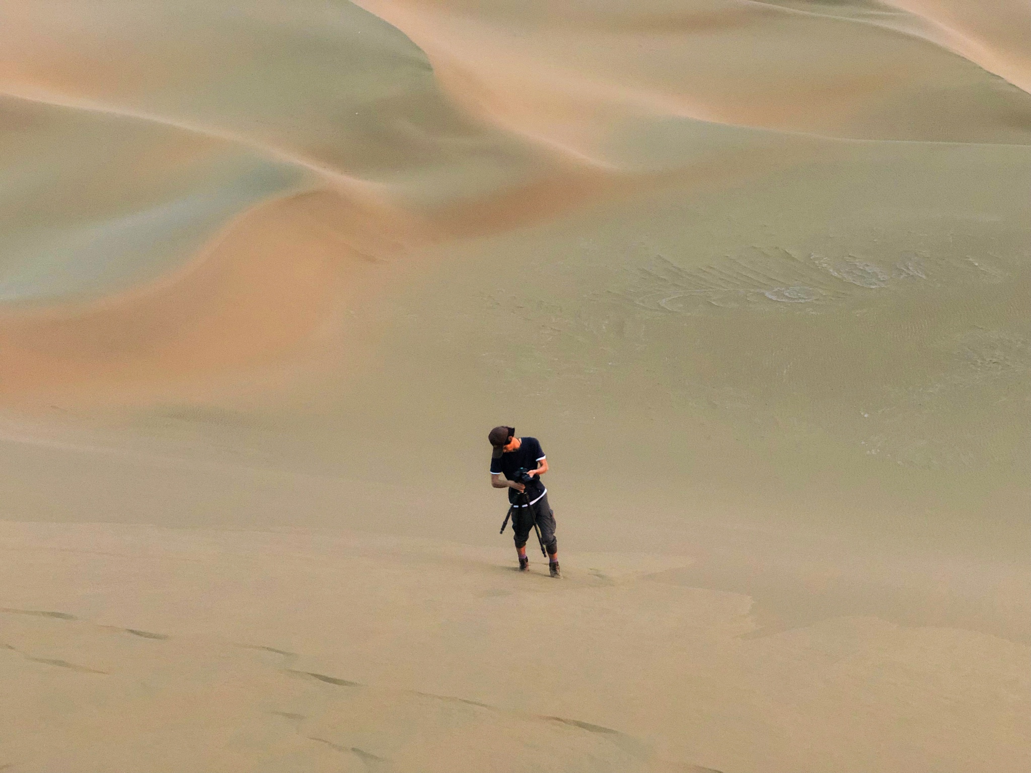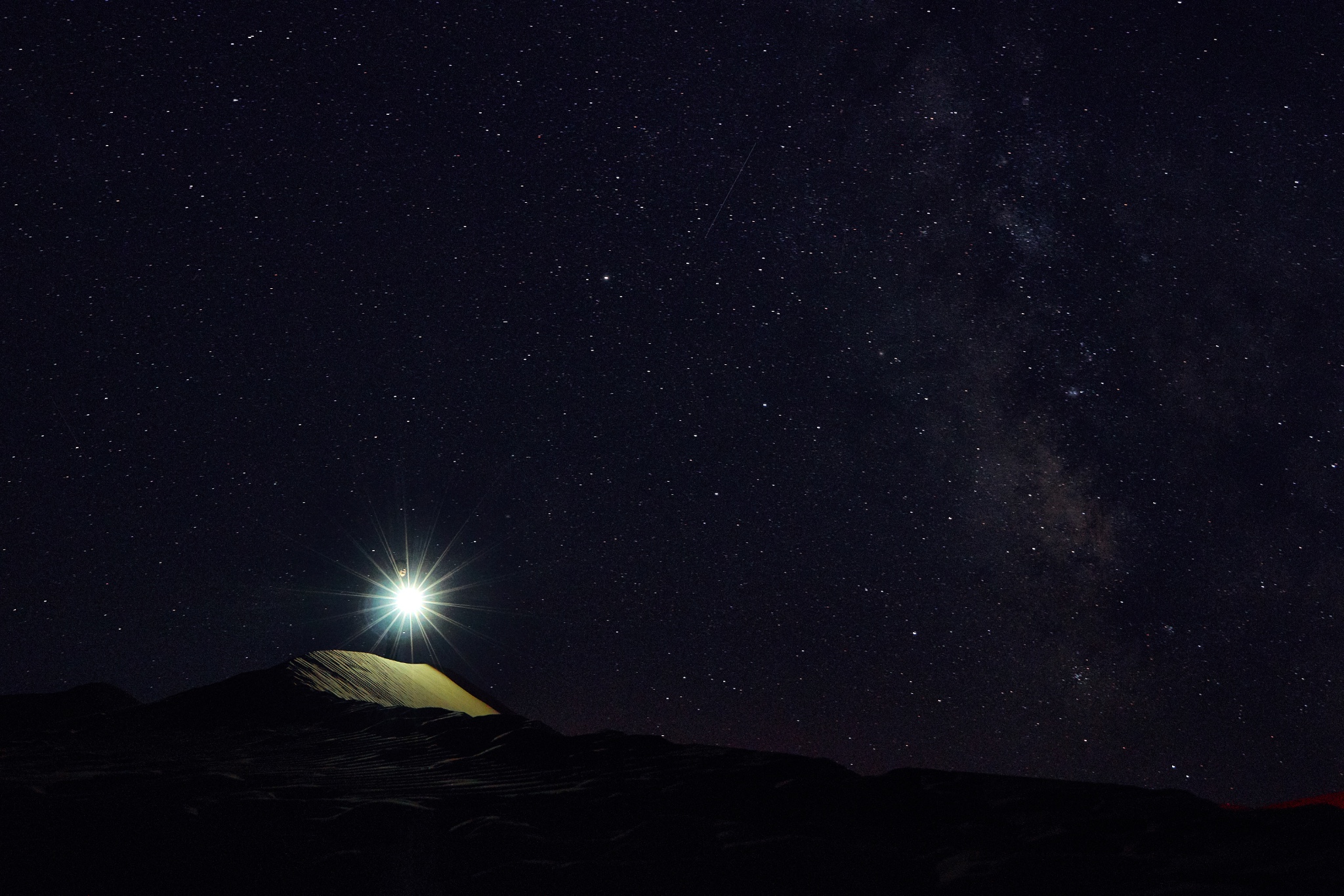 行程: 乌鲁木齐 市——京新高速—— 库姆 塔格沙漠 218km 3.5km 概述: 一觉醒来已是上午11点多,瞅一眼青旅微信群,果然有约伴的消息,最终被这条吸引了:“今天有人去沙漠看星星吗?” 沙漠、星空,想想就美。和发信息的小伙伴确定好之后,起床洗漱收拾衣服,一气呵成,楼下大厅面基。 一行四人,除了我之外分别是: Hins华哥——摄影师兼此次行程的“司机大哥”,发起此次行程的目的就是希望去沙漠里面拍星空; 小象—— 北京 姑娘,性格爽快,因工作常年游走于亚欧国家,尤其是 日本 ; 嗯哼妹子——96年姑娘,从大学时就自己游荡于国内各地和 东南亚 各国,酷爱拍照却从不发朋友圈。 下午1点左右出发,目的地是距离乌市280公里开外的 库姆 塔格沙漠,“ 库姆 塔格”在维语里面是“沙子山”的意思。该沙漠位于 鄯善 县,属于 塔克拉玛干沙漠 的一部分,是世界上少有的与城市零距离接触的沙漠。 大约4小时过后,到达沙漠入口,因为需要自驾入内,4人一车,共420元。 自驾会有不同的视角和经历, 比如 开进去10分钟左右,车子就陷进了沙地。减重、刨沙、垫砖……并没有什么效果。忽然,“天使”的声音出现了:“你们好!需要帮忙吗?”一辆白色 普拉 多上跳下一男一女,年龄不大,讲话却不疾不徐,成熟稳重。男孩子和Hins捣鼓着拖车,手法熟练,我们已经是他们今天帮忙拖的第二台车了。女孩子拿着相机在一旁拍摄。经聊天得知,他们是一对情侣,00后,想要做自媒体,此次出来自驾也算是搜集素材。除了为自己已成为名副其实的“老年人”叹息之外,更由衷地感慨到,现在这个时代下年轻人思维的活跃以及足够支撑把这种活跃思维付诸实现的物质基础。 车子拖上来,开到停车场已经是傍晚8点,距离日落还有1个半小时,祖国领土之广在这里也体现一二。 乌鲁木齐 和 北京 相差两个时区,作息因此也普遍偏晚。 要到沙丘上面去看日落。低血糖患者连喘带爬总算没拖后腿,到了最大的沙丘上养养神,等着夕阳和霞光。差不多9点开始,西边的天空开始泛黄,太阳也逐渐收敛起它的锋芒,并渐渐变红,慢慢地把那一片天空都映得富有层次感。在晚霞的助阵下,太阳开始进行它每日一度的“落山”仪式,这个过程不会很久,因为感觉照片还没有拍够,它便已经缓缓落入了地平线。而此时的晚霞变得更加汹涌起来,它们是今天最后的主角。不久,天便真正地黑了下来。 疯狂地拍照过后,四个人也消停下来,躺在迅速变凉的沙丘上,望着天空,发呆、闲聊、等着星空铺满天。这种时间静止的感觉熟悉却遥远,古 罗马 桥边的小提琴声依稀传来,与 马德里 王宫前面的大提琴演奏声交相呼应;在多瑙河的晚霞中与自己的学生时代告别;徳钦的星空银河竟已经是三年前的故事…… 半夜一点,缓过神来的四个人决定找个住的地方。沙漠腹地中有片营地,租了两顶帐篷,吃了点东西,我们三人跟着Hins小哥哥爬到一片无光源的地方,正式开始星空拍摄。 有趣且有成效的拍摄结束后,回到帐篷睡觉时已经是5点多。不知道在黑暗中沉睡了多久,被身下的沙子烫醒了,看看时间,8点半。四个人睡眼惺忪地收拾下,邋里邋遢地开始返程,兴奋与美景已留在昨天。 沙漠一夜为这次毫无计划的 新疆 之行做了充分的预热,更多的惊喜和转折即将上演。 进入沙漠的第一个惊喜,就是车子陷进了沙地。。。
