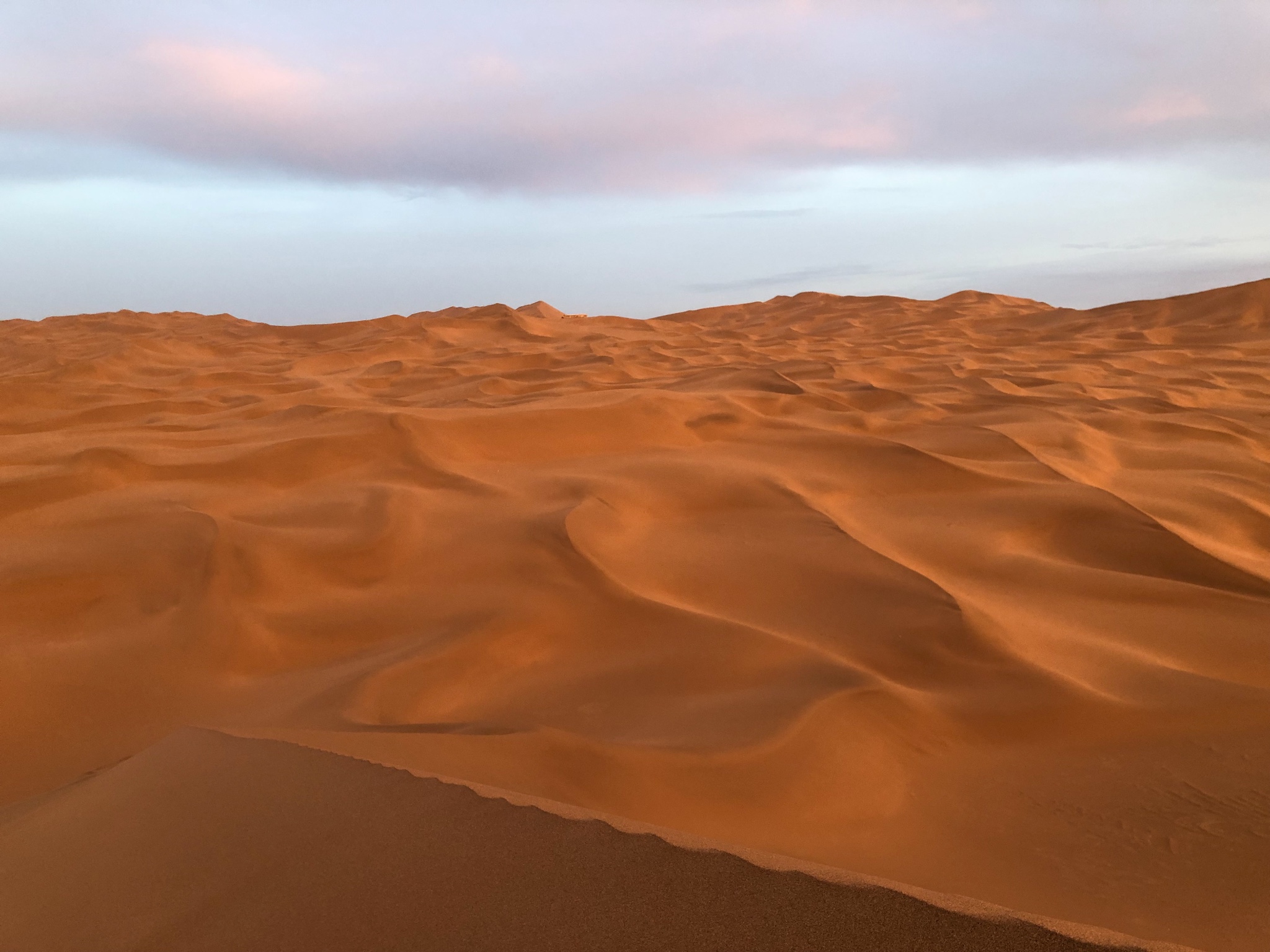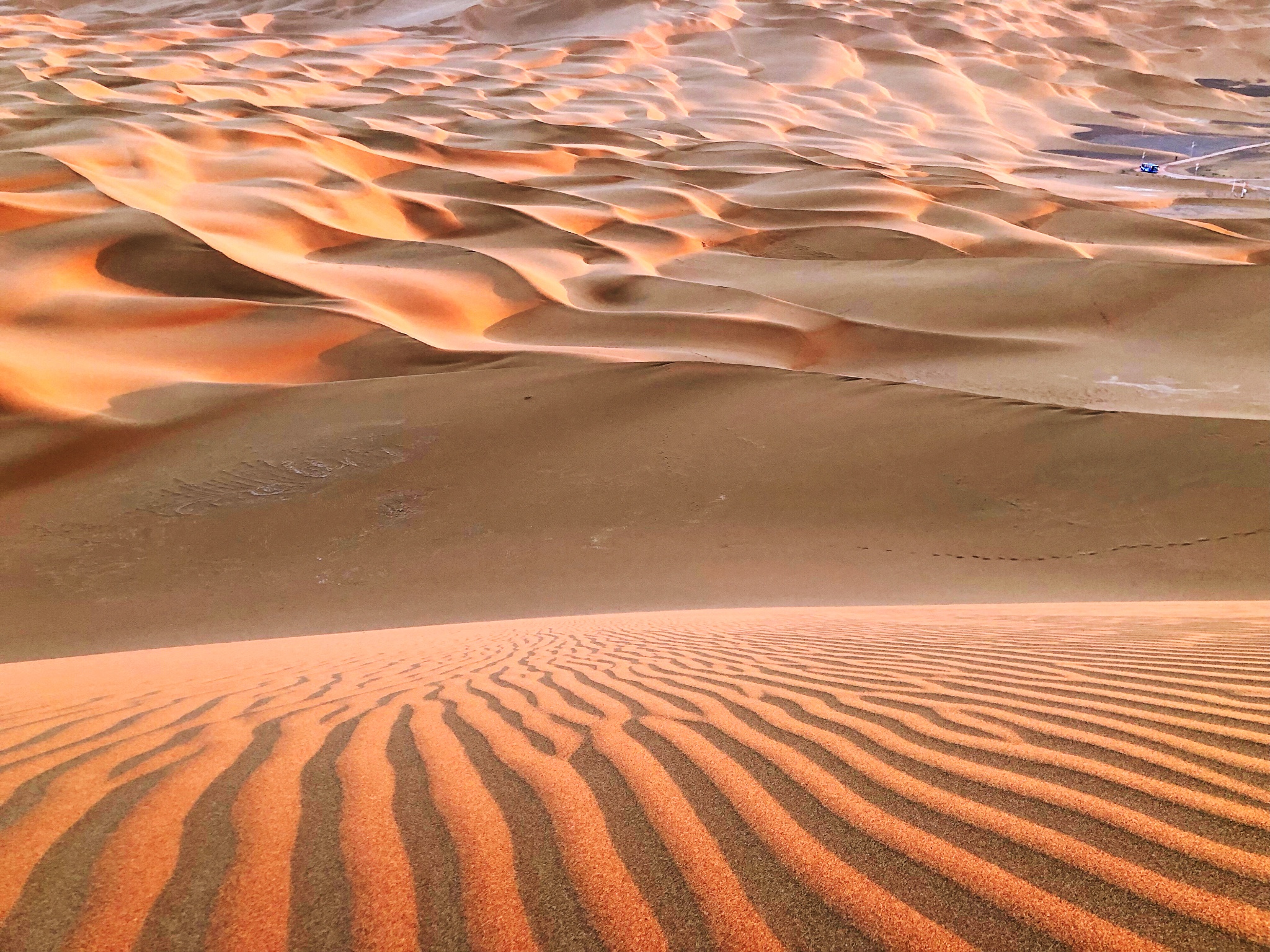 傍晚的沙漠在霞光的照射下显得更有层次!