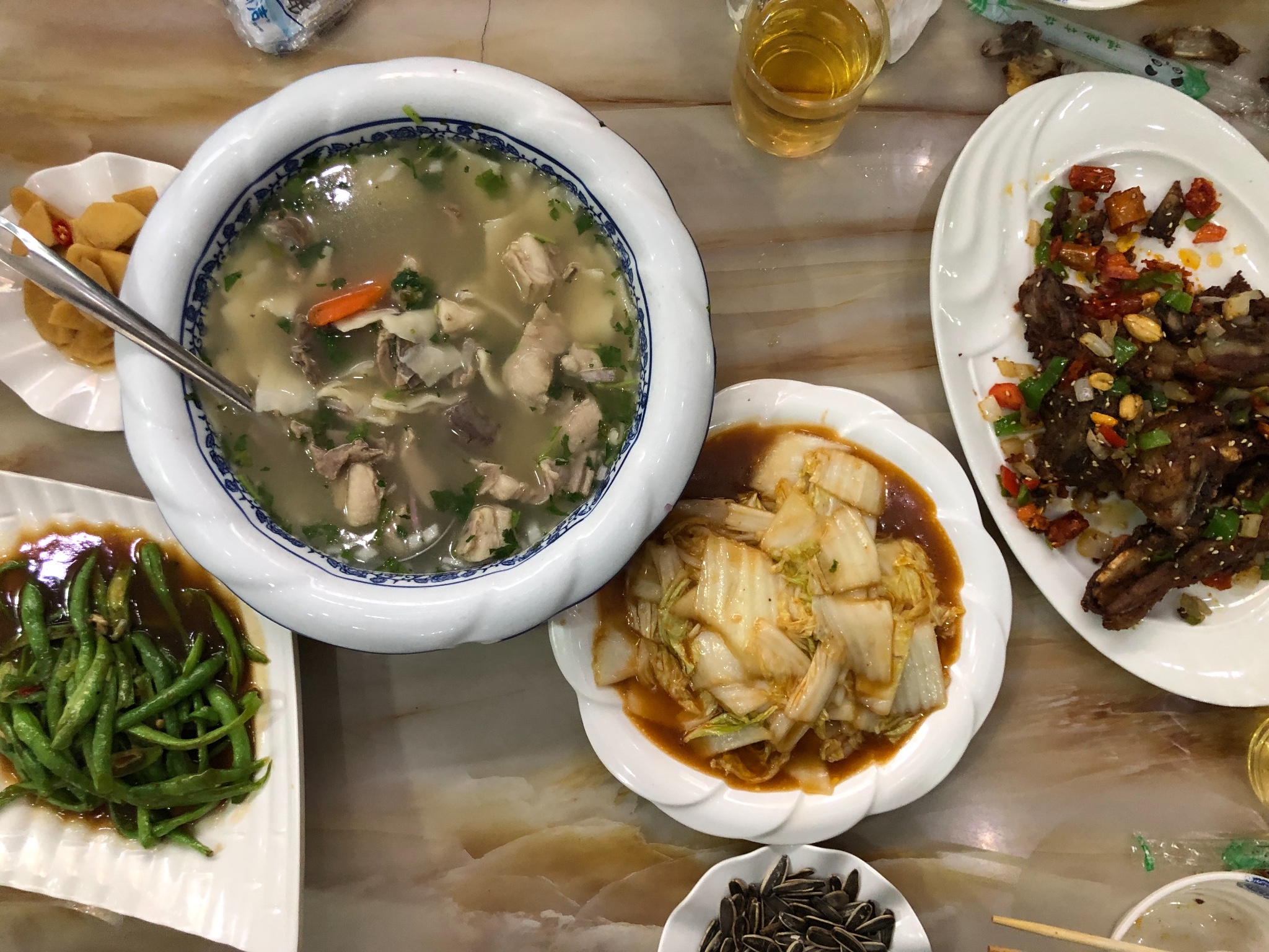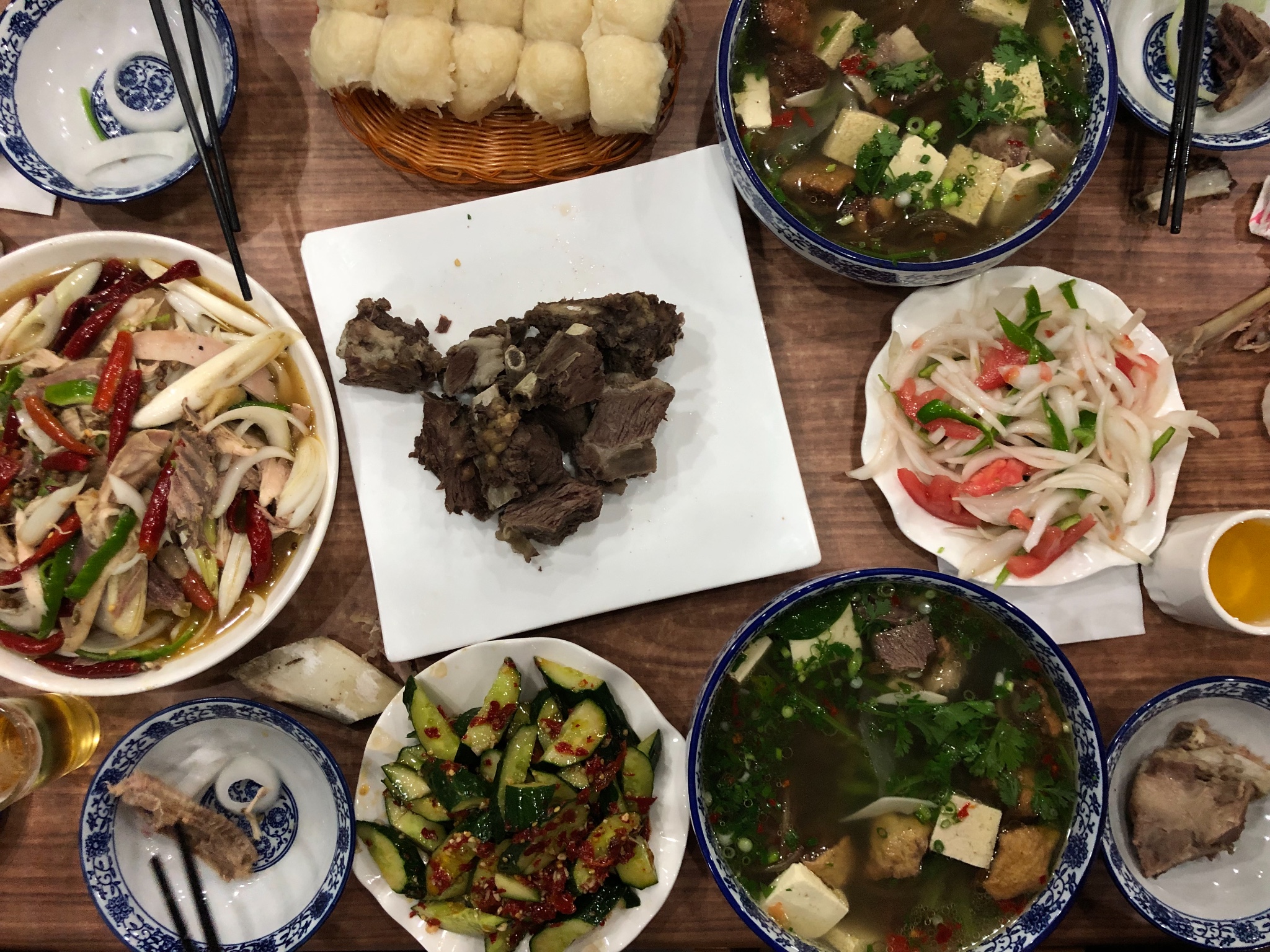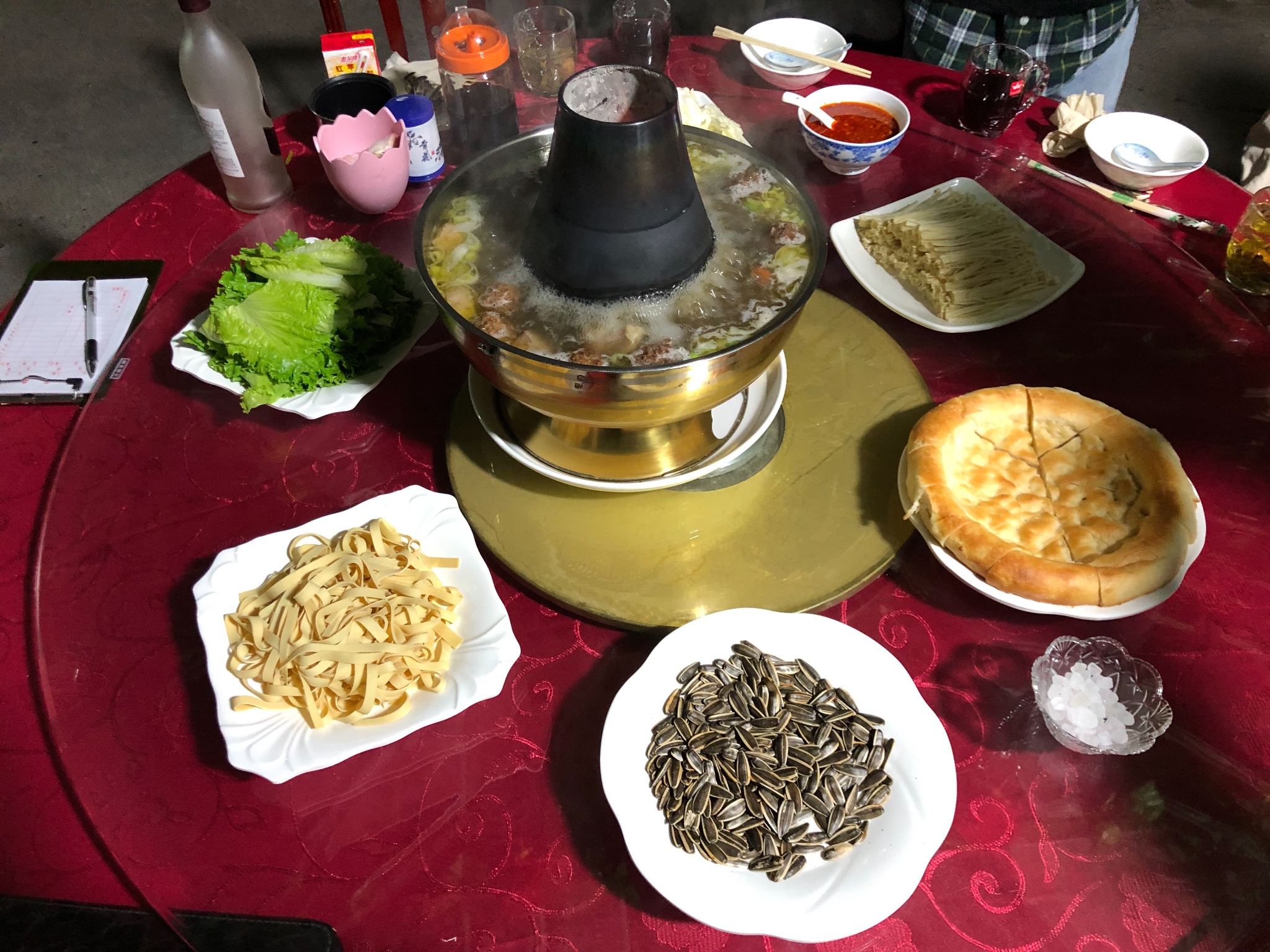 餐一: 由于在野草原上“野”了太久,到达 特克斯 时已经是晚上10点多,放下行李,直奔Ophelia小姐姐提前查好的馆子——一品土火锅,他家的特色是鱼羊火锅。然而,竟然卖完了,这才11点啊大哥!呃……经老板推荐,到了他亲戚家开的店,主打羊肉火锅。烧炭铜锅、清水锅底、大块羊肉,最原始的肉香用最简单的烹饪手法表达,另外配有手工牛肉丸、几道涮菜、馕,为这一餐增色不少。 这顿饭入选我在整个 新疆 行程中所有餐食的Top3。