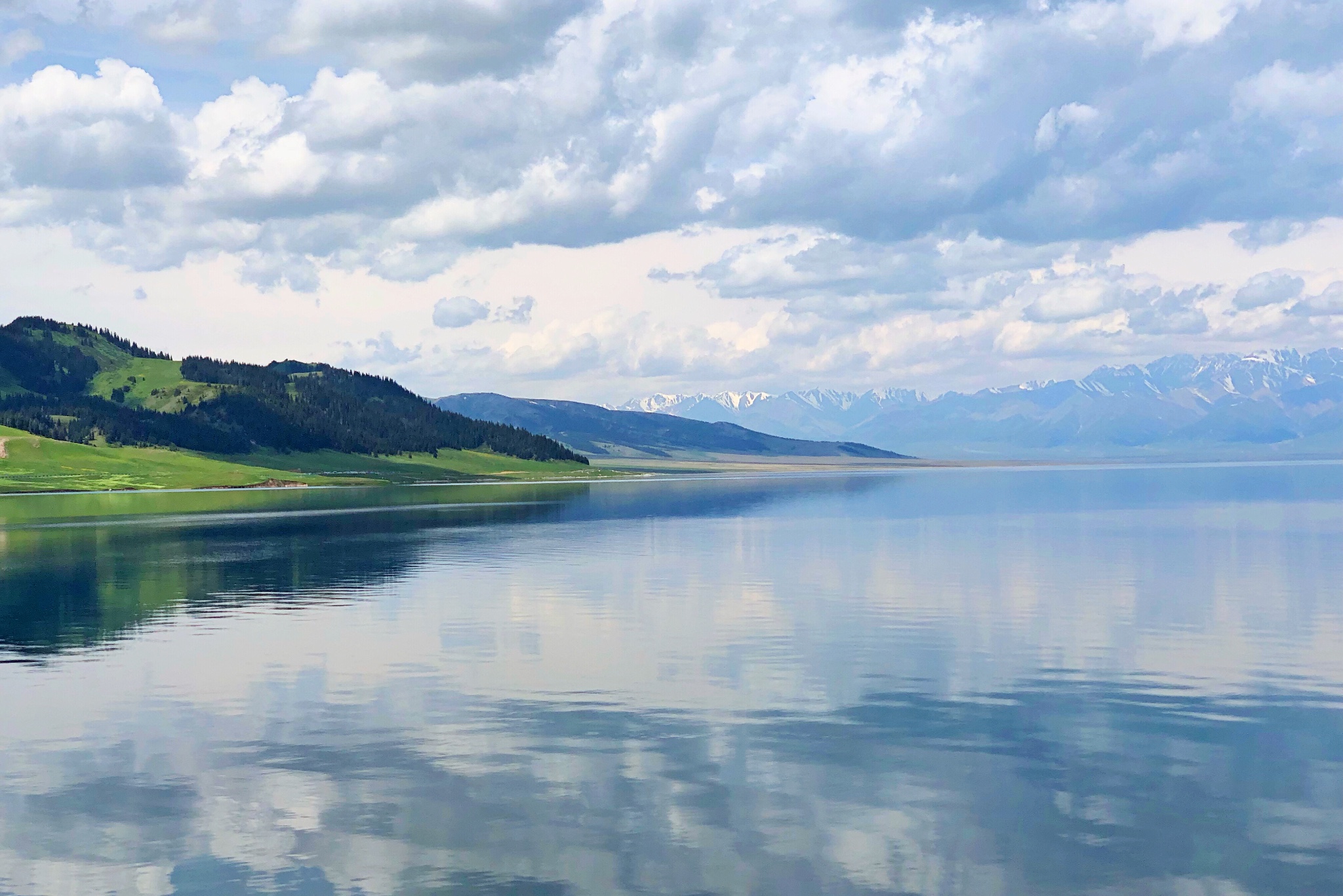 湖面如镜。赛里木湖正是《如果有来生》中“大草原的湖边”的样子啊!