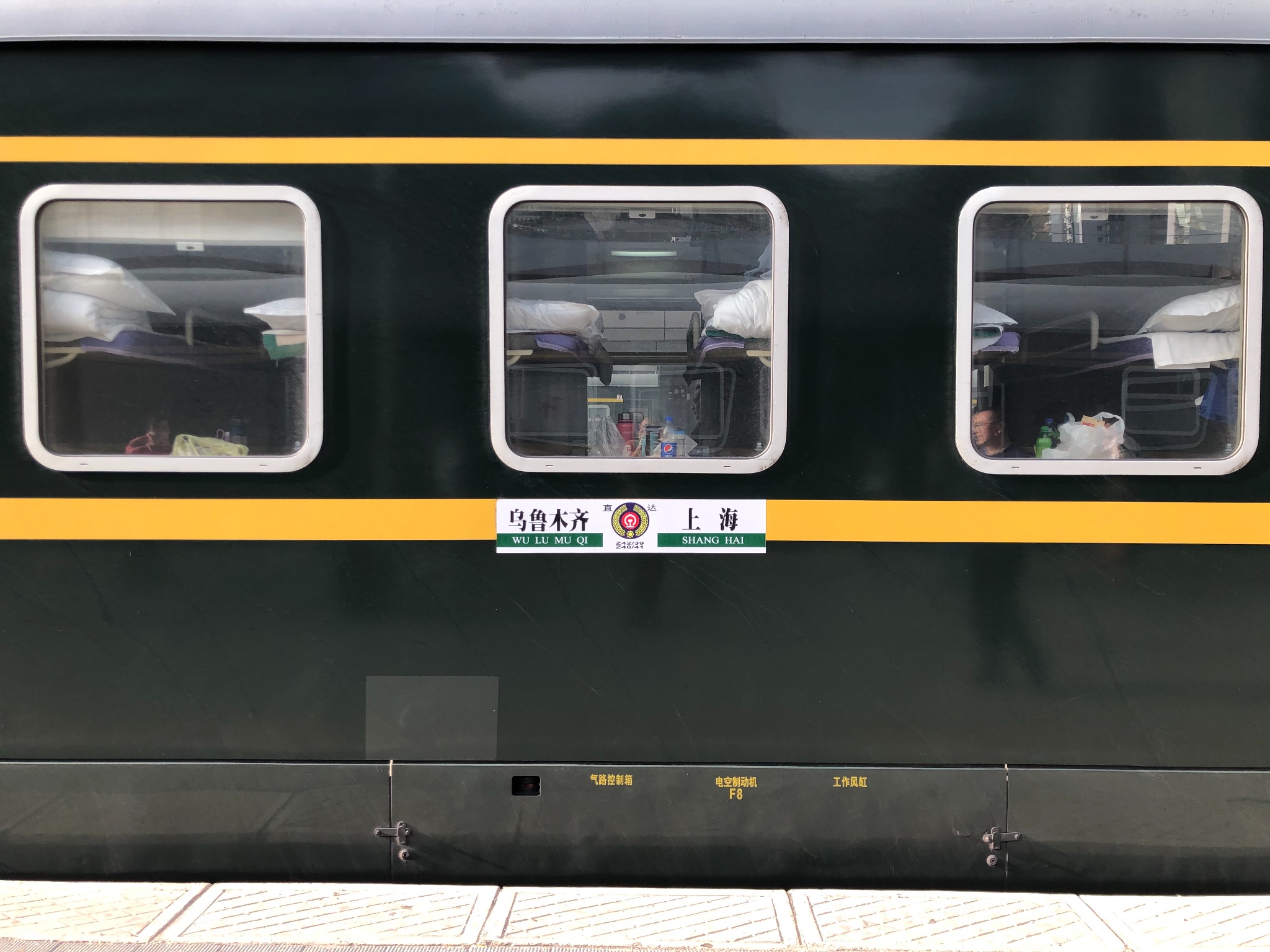 南京 到 乌鲁木齐 火车(Z40)大约要36个小时多,心里象征性抵触几秒之后,更多的是期待。喜欢坐火车出行,喧闹且安静。平时睡眠不好,然而每次坐火车卧铺总能睡得很香,甚至需要订闹铃以防万一;而且在火车上这种嘈杂声中竟然很容易让自己平静下来,陷入某种情绪或者思考中。可能有时间坐火车才是身心最放松的时候吧!躺在大绿皮上听着车轮和铁轨摩擦的声音真是一件美妙的事情啊!