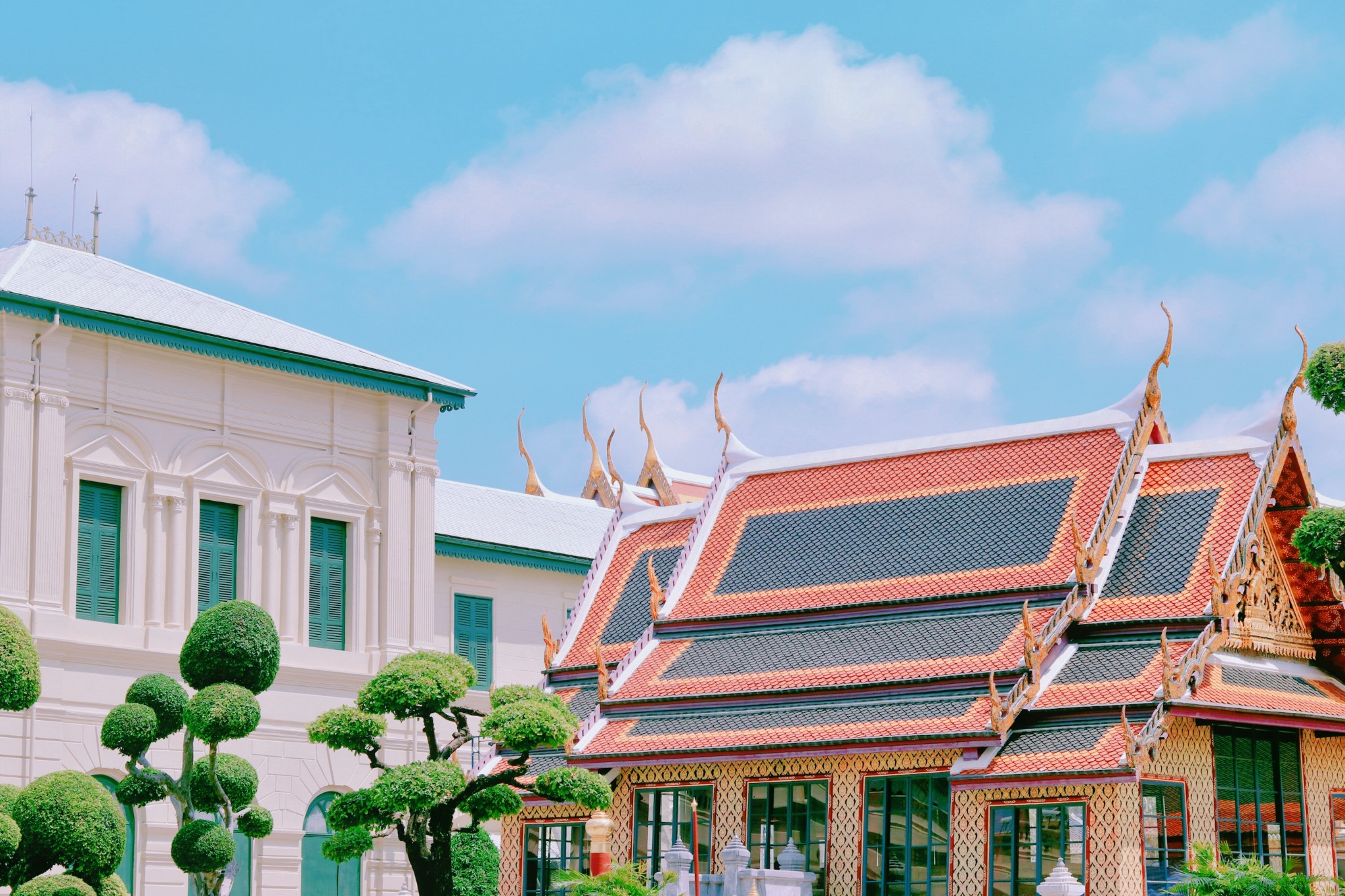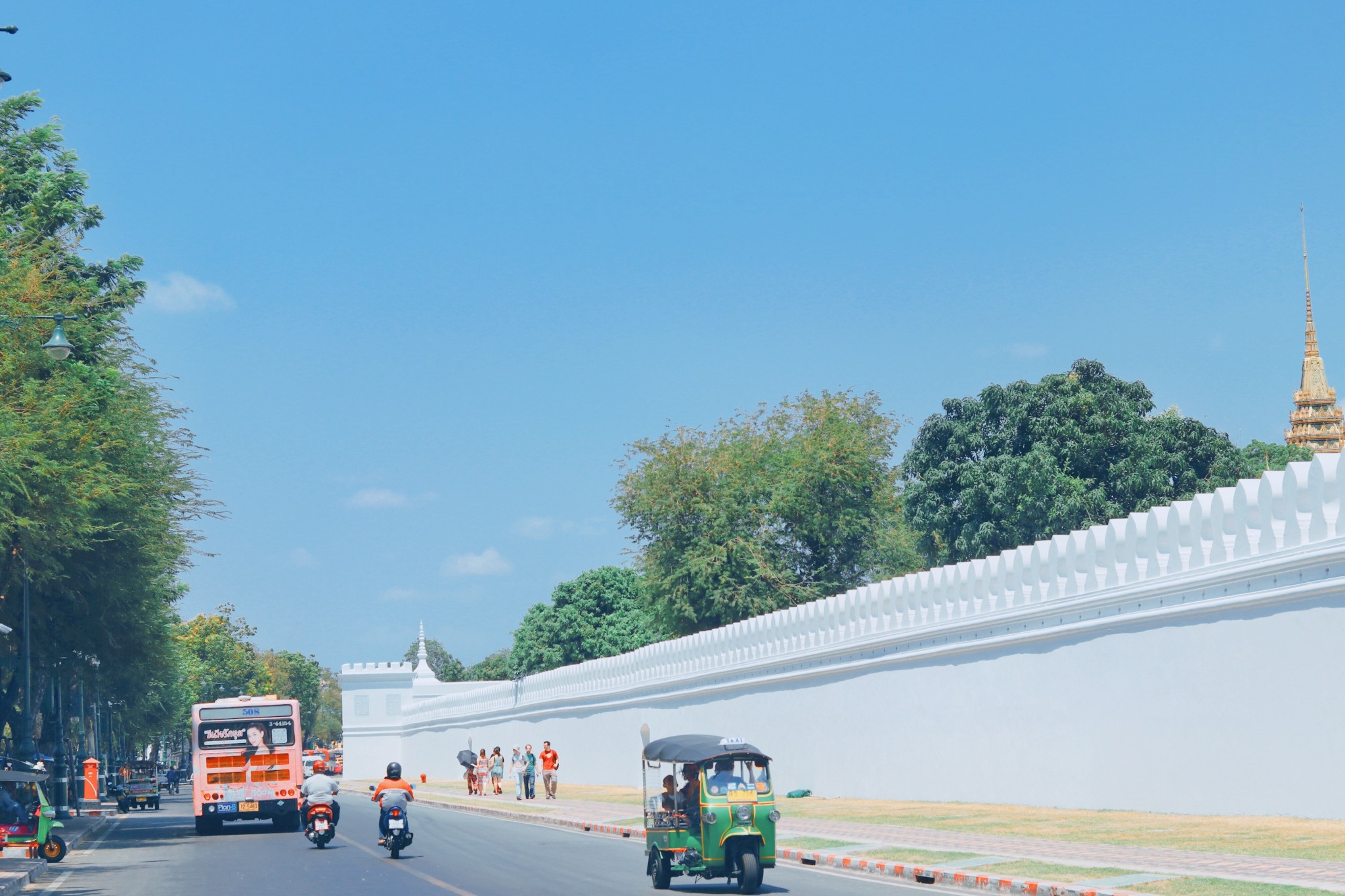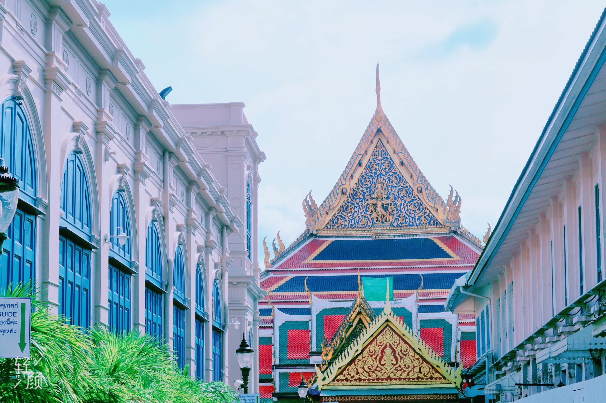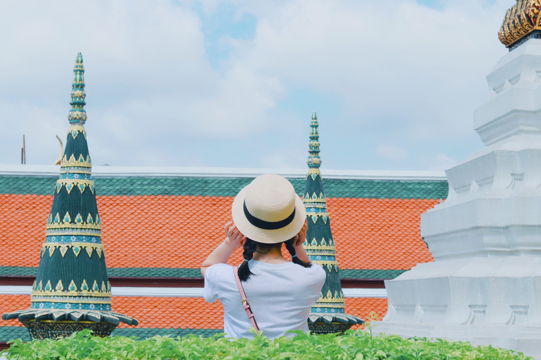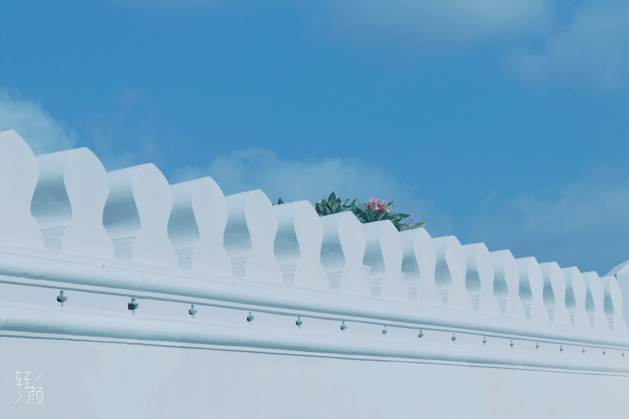 大皇宫的景区外面是一圈白色的围墙,在蓝天白云的存托下,画面很美很干净。 也是很容易出片的地方。