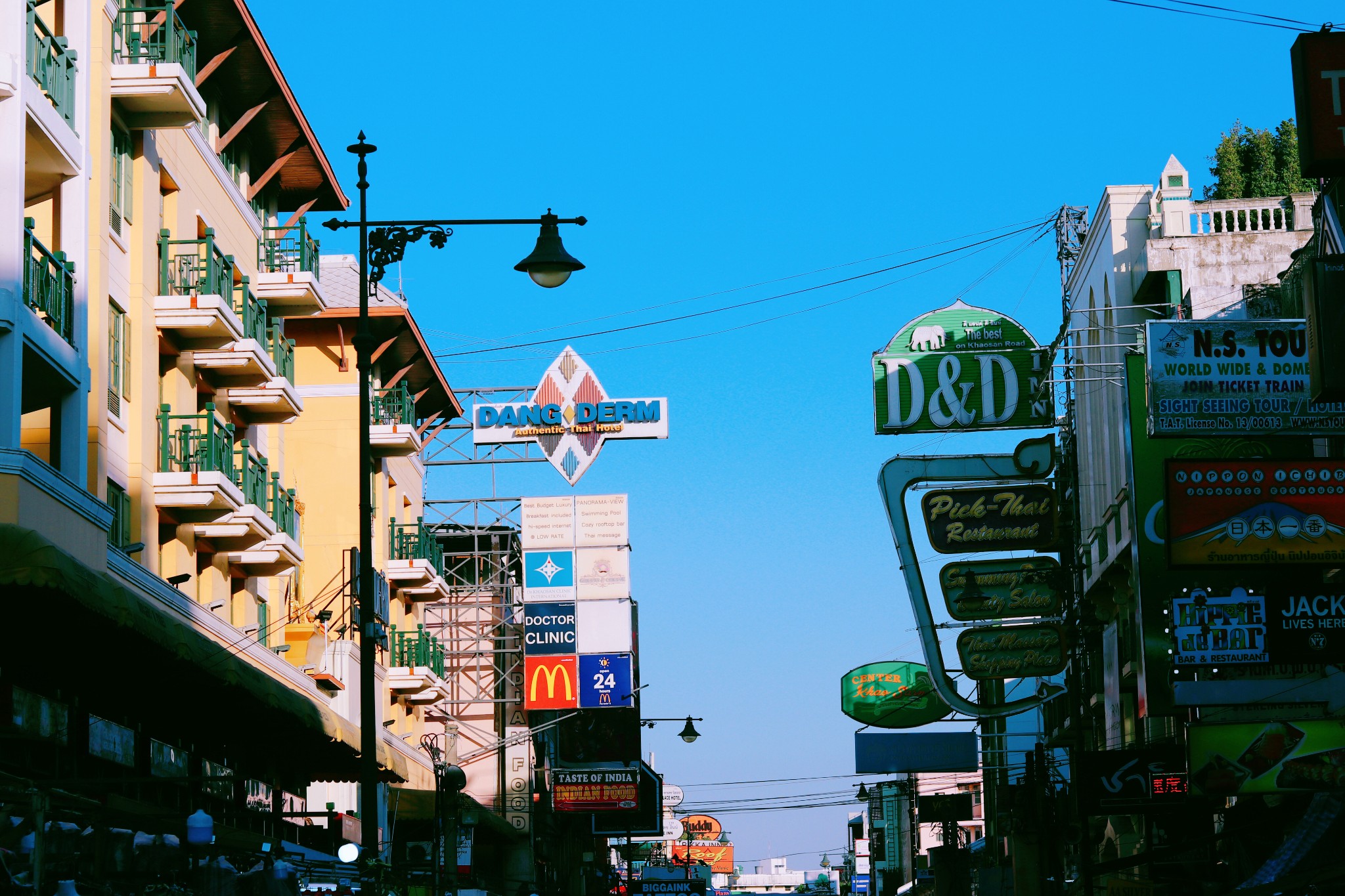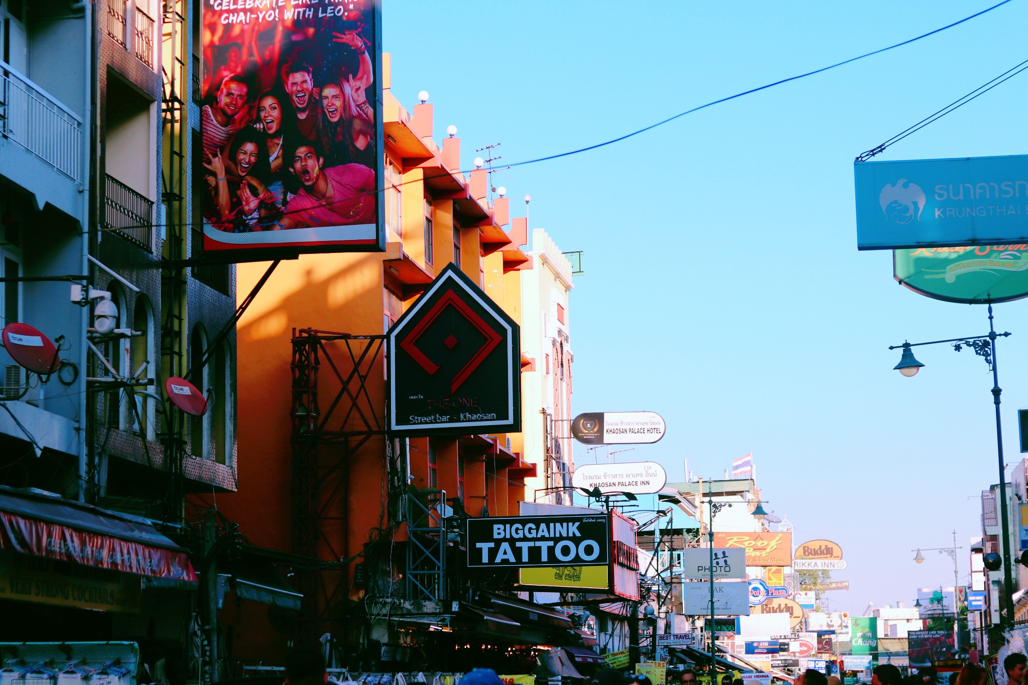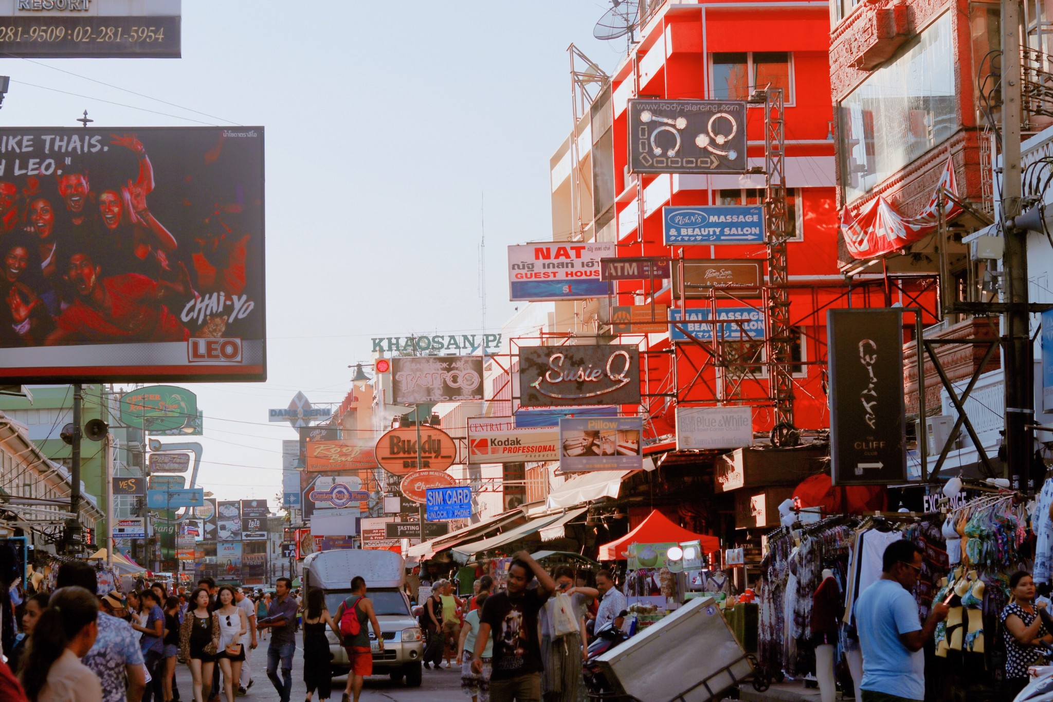 我们没有漫无目的走着,每一条街都是热闹的景象。 街 上林 立着数之不尽的青年旅社、酒吧,五花八门的广告牌更是“宣告”着这里的喧哗与激情。 白天,考山路的路边摊是挑选纪念品的绝佳之地,这里有很多价格低廉的小商品,很多都能体现 泰国 风情,买来作为伴手礼很适合。