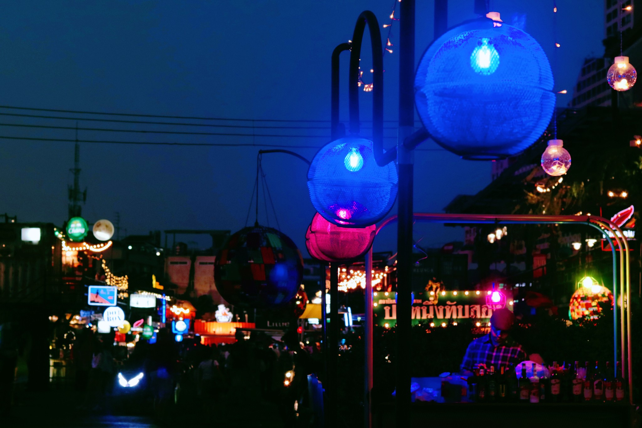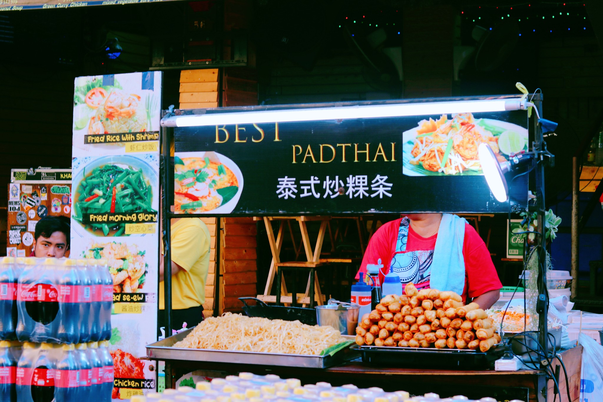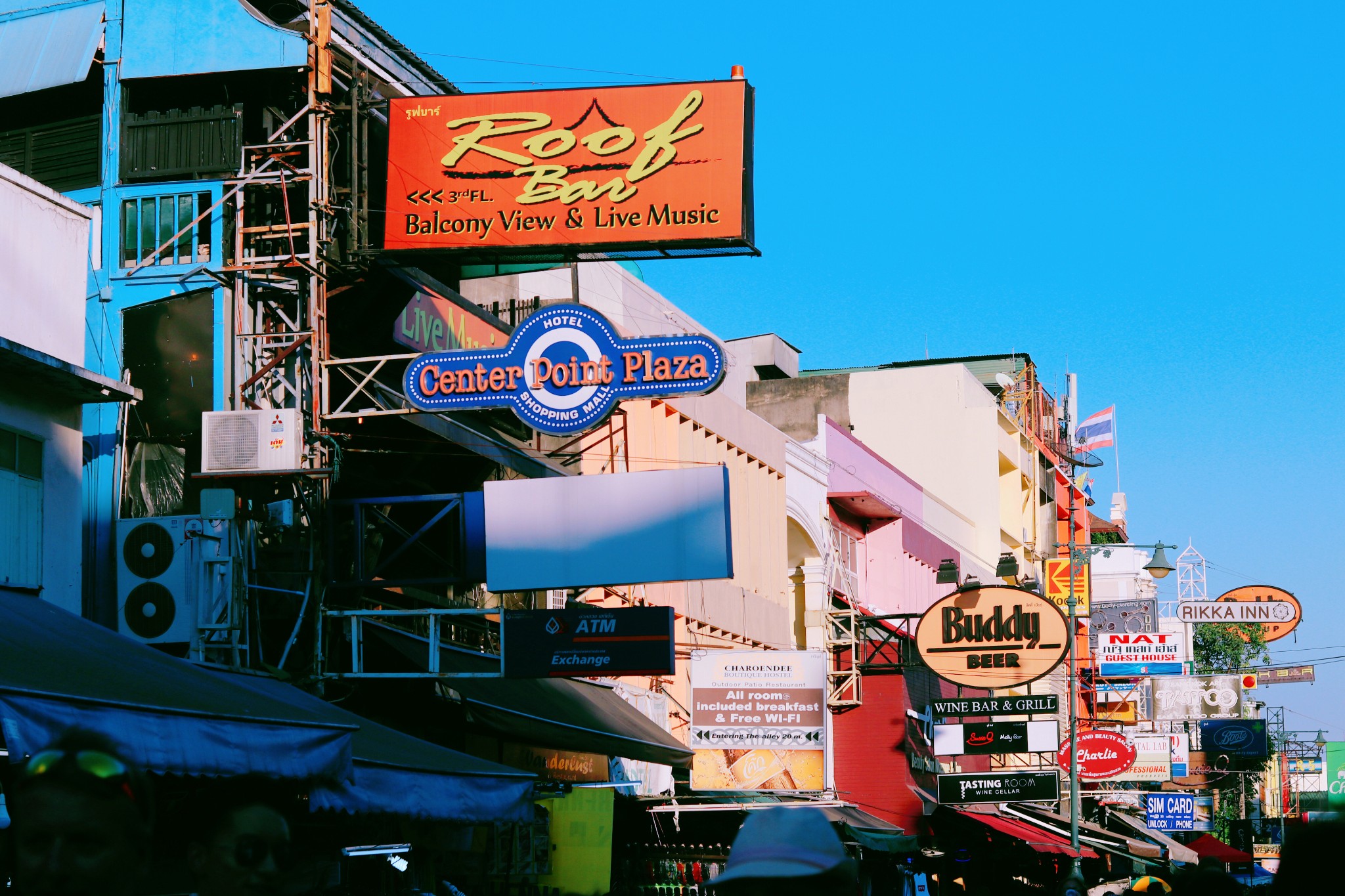 我们没有漫无目的走着,每一条街都是热闹的景象。 街 上林 立着数之不尽的青年旅社、酒吧,五花八门的广告牌更是“宣告”着这里的喧哗与激情。 白天,考山路的路边摊是挑选纪念品的绝佳之地,这里有很多价格低廉的小商品,很多都能体现 泰国 风情,买来作为伴手礼很适合。