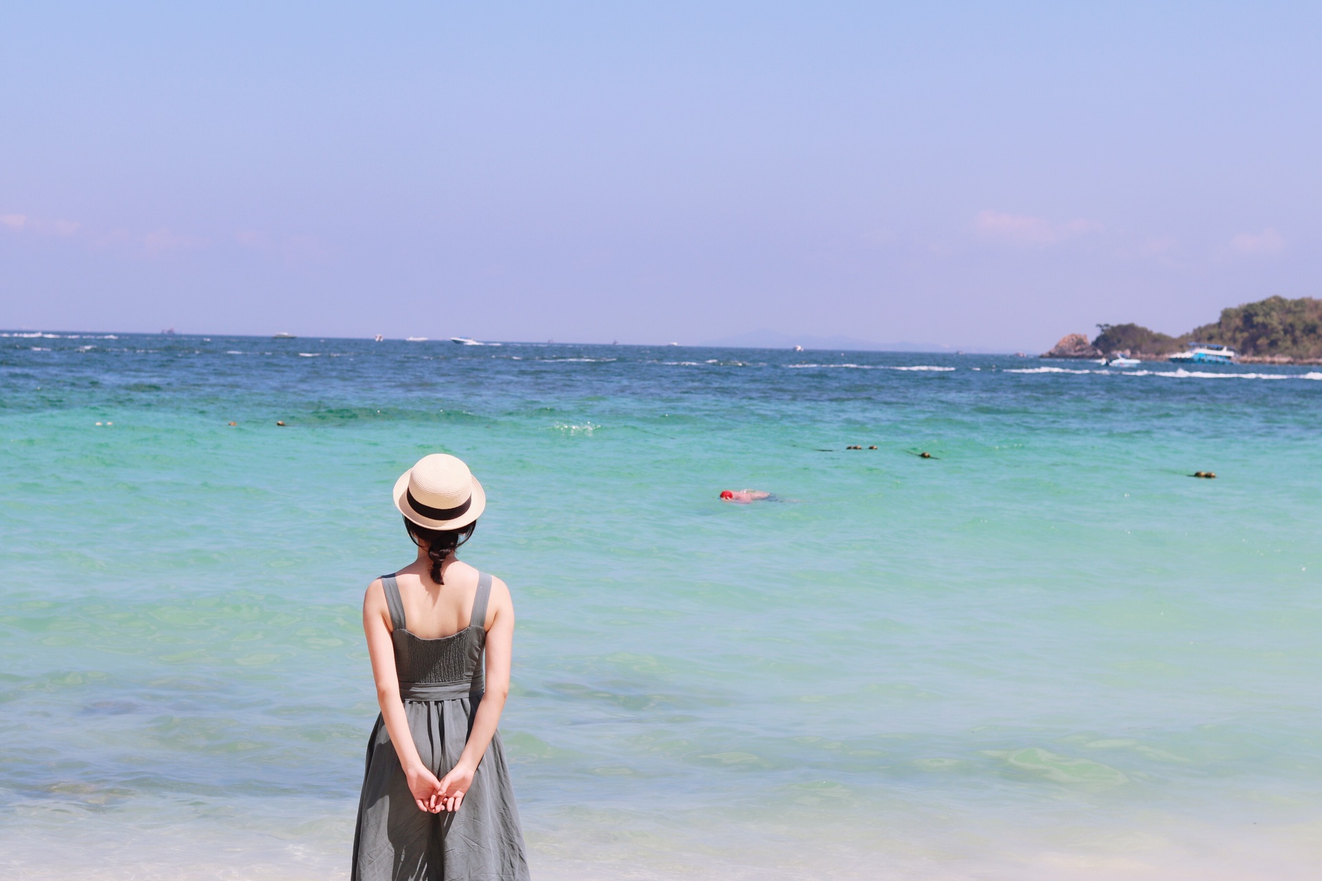 上岛后,搭乘一辆摩托车去往had ta yai beach(塔雅海滩),10泰铢?(忘记了),5分钟就到 我们对海上项目不是很感兴趣,也只是想悠闲的看美丽的大海 所以,had ta yai beach很合适