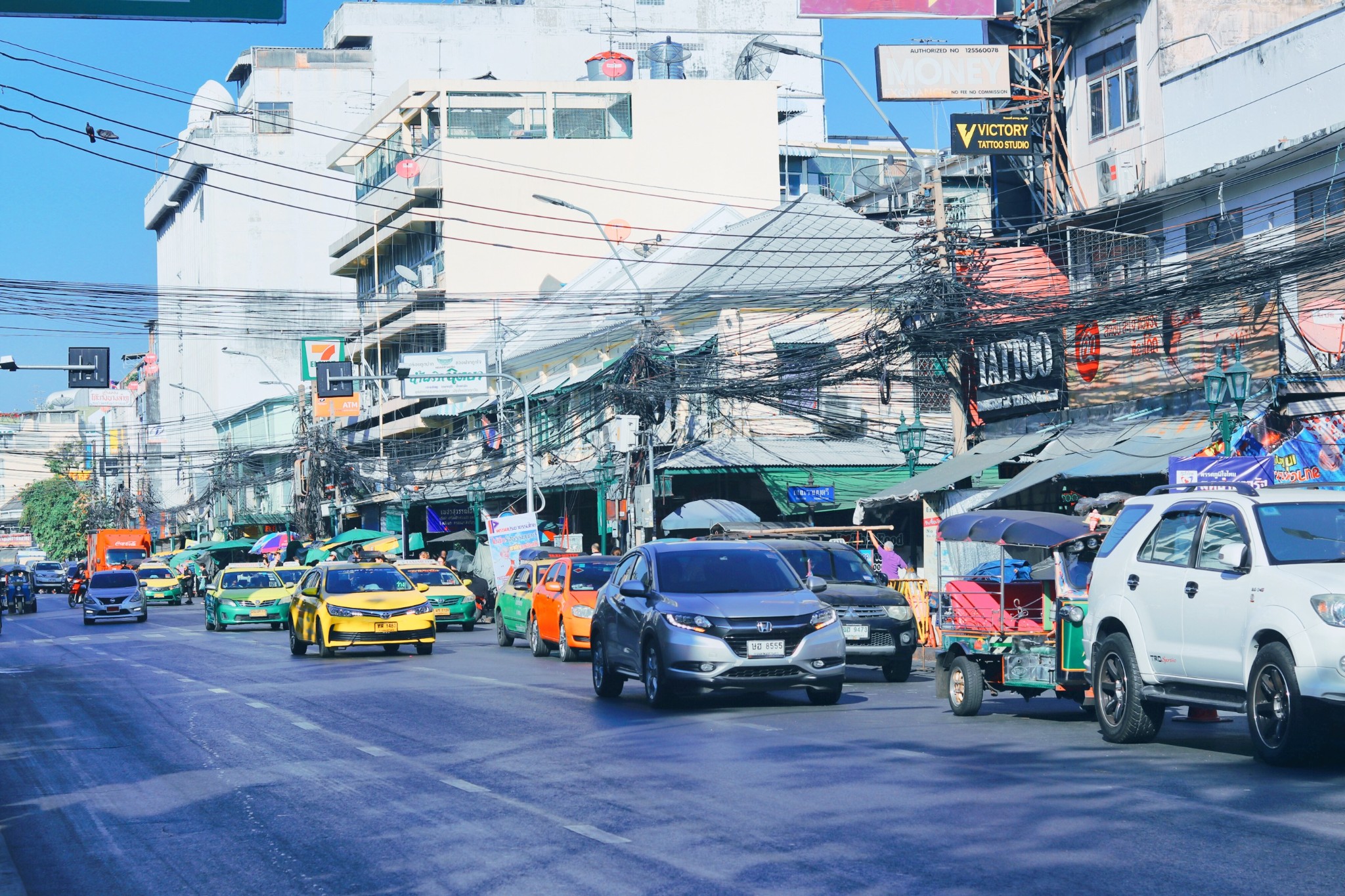 曼谷 市区,交通很方便,交通方式也很多 比如 突突车,类似于国内的三轮车,只不过他们的更漂亮 似乎 东南亚 的“三轮车”,都是各种五颜六色的装饰 就像是代表着 东南亚 热情、活泼的文化 突突车只适合短距离,且需要讲价 我们也不知道标准,基本上是在对方给的基础上先砍掉一半,再根据对方反应来应对