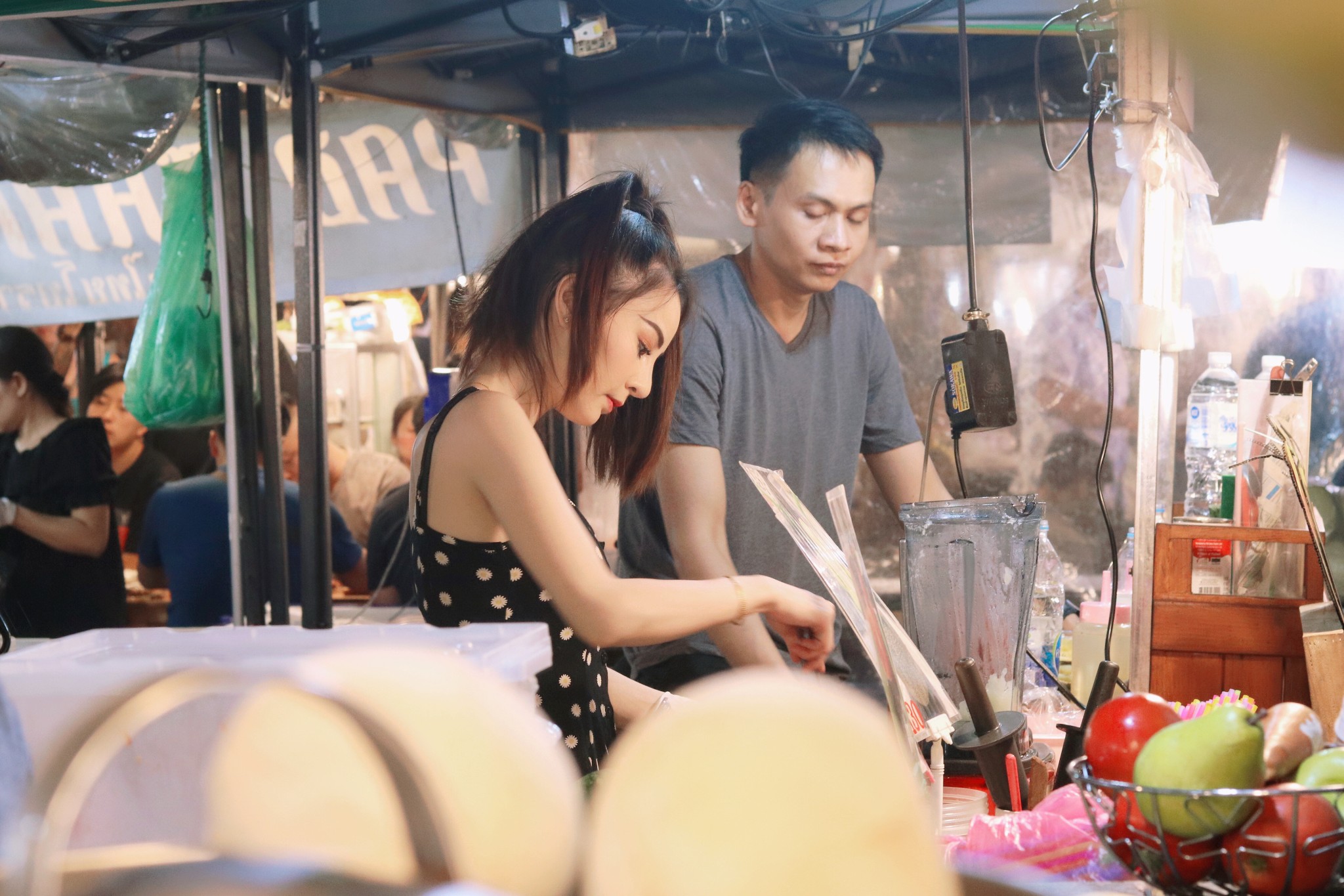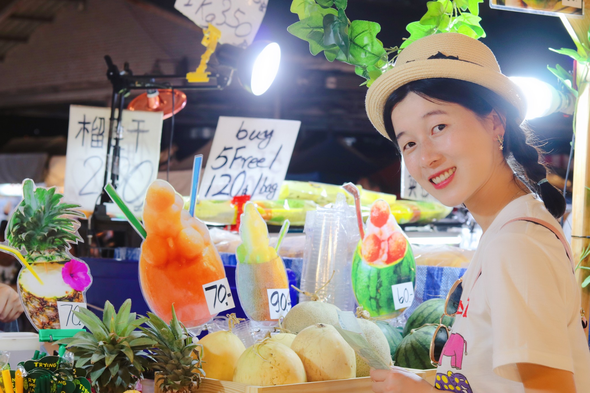 火到 中国 各网站的“水果冰沙西施” 在这些摊位中,也算是独树一帜 算好看吧,但并不惊艳。 如果为了喝到一杯她做的冰沙,需要排队1-2个小时,个人觉得有些太疯狂了 有这个时间,多看一个景点多好。
