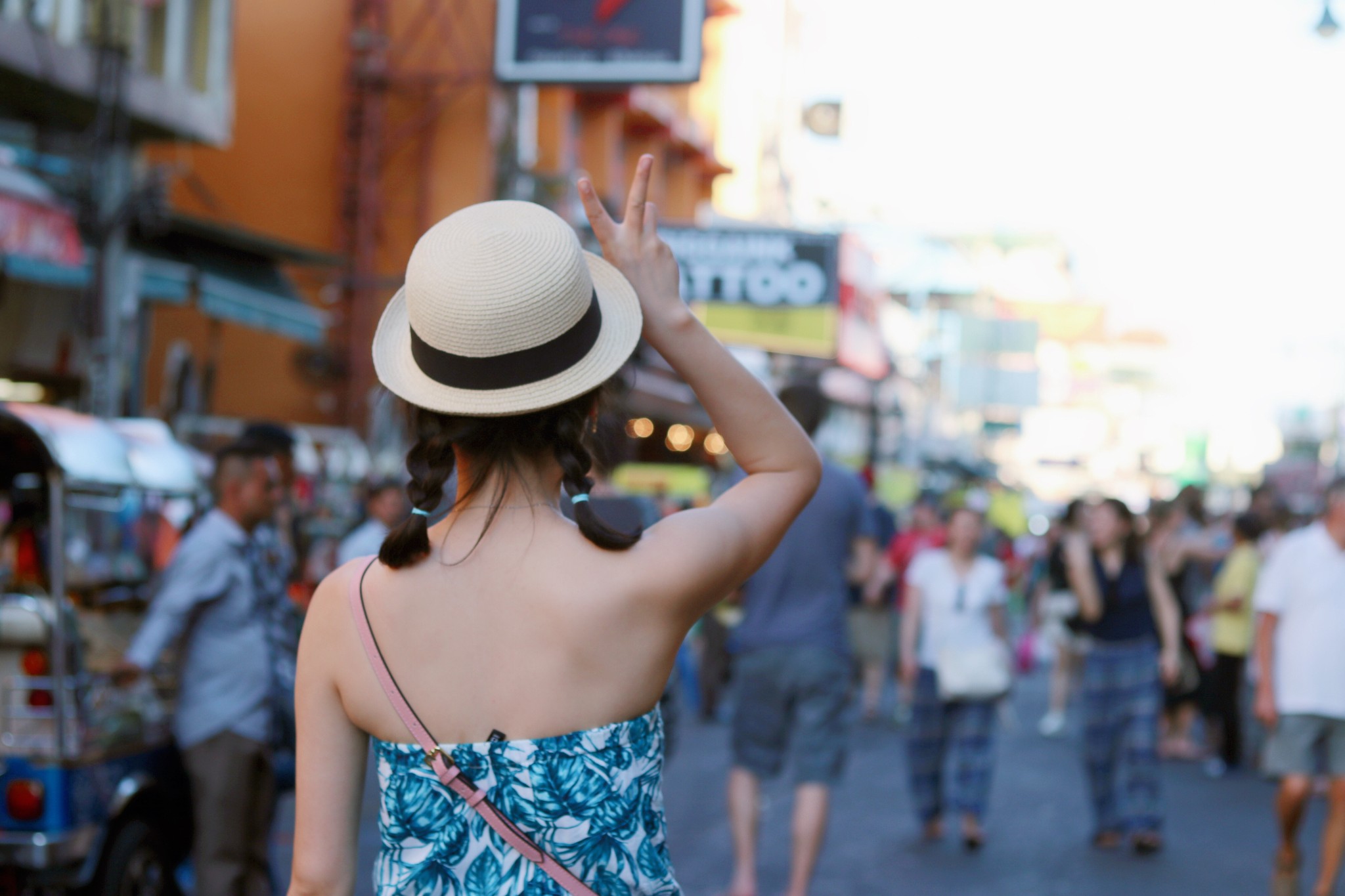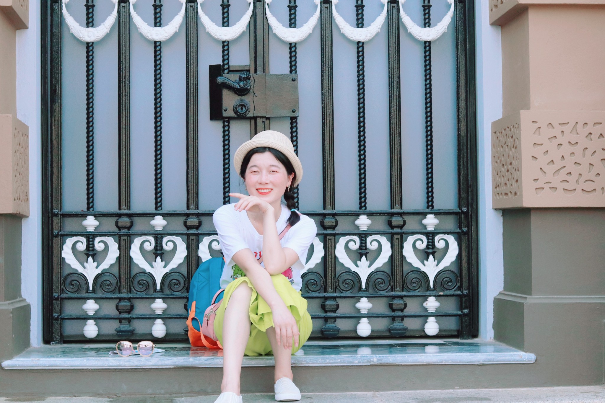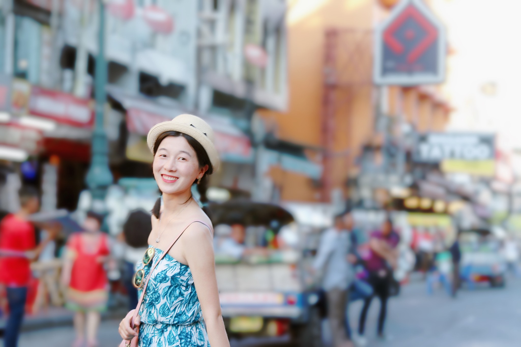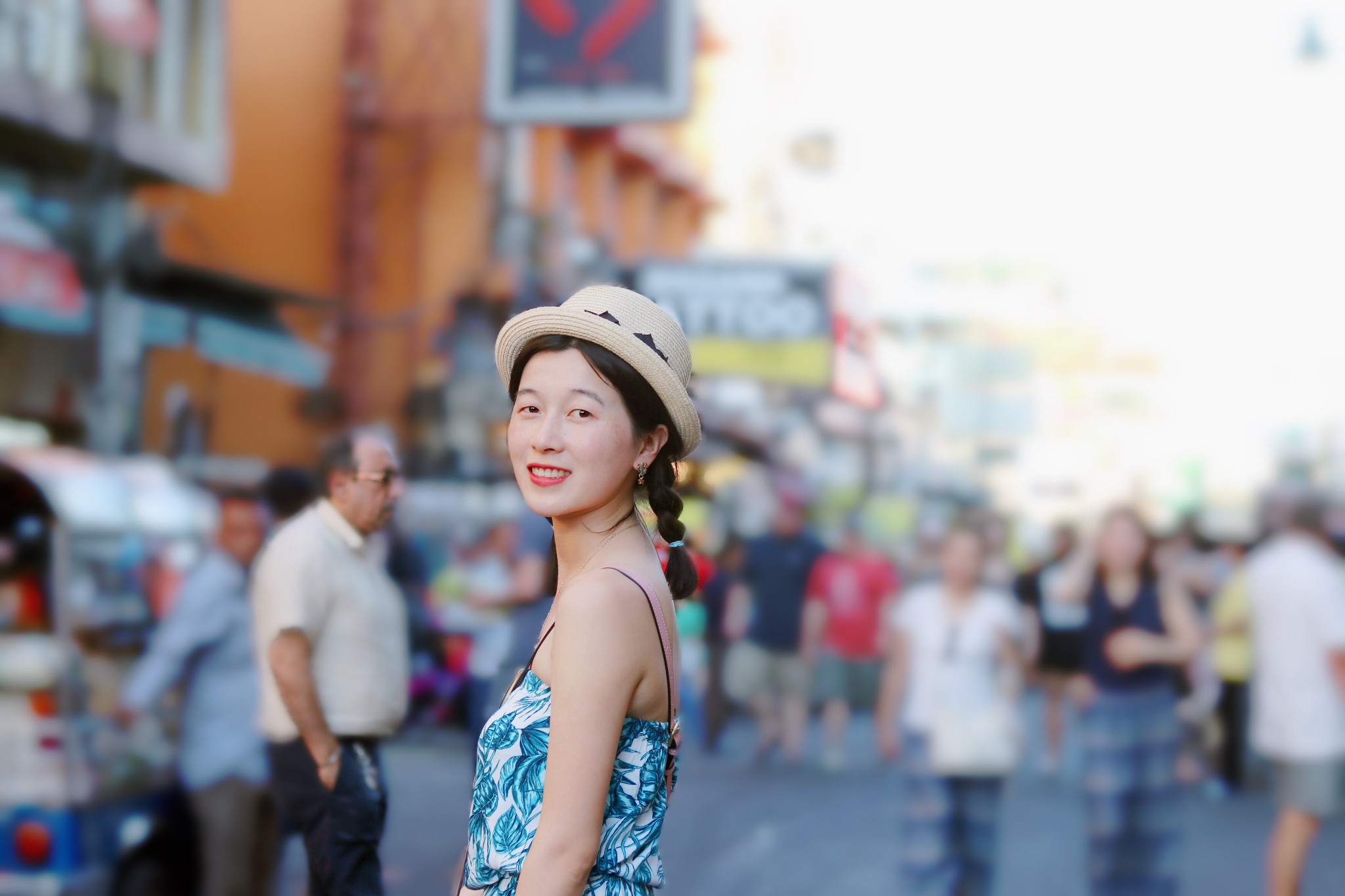 这里的建筑都很高大,路上的人群也多,所以我们的构图基本上都是建筑物的头顶了 广角镜头自然是适合这里的,但人群无法避免,几乎找不到一处无人之地 人像,也只能是找各种角落。 天气炎热,人群攒动,基本上都是走马观花式的打卡。