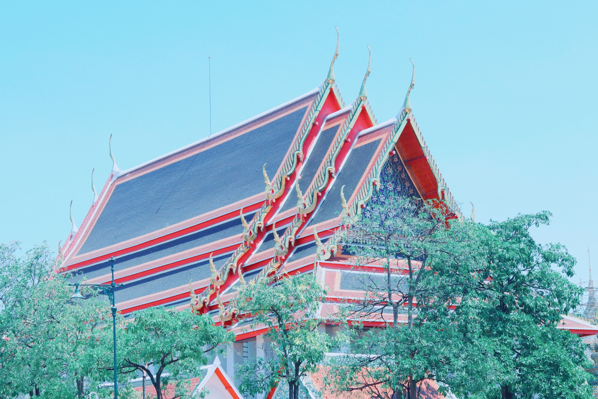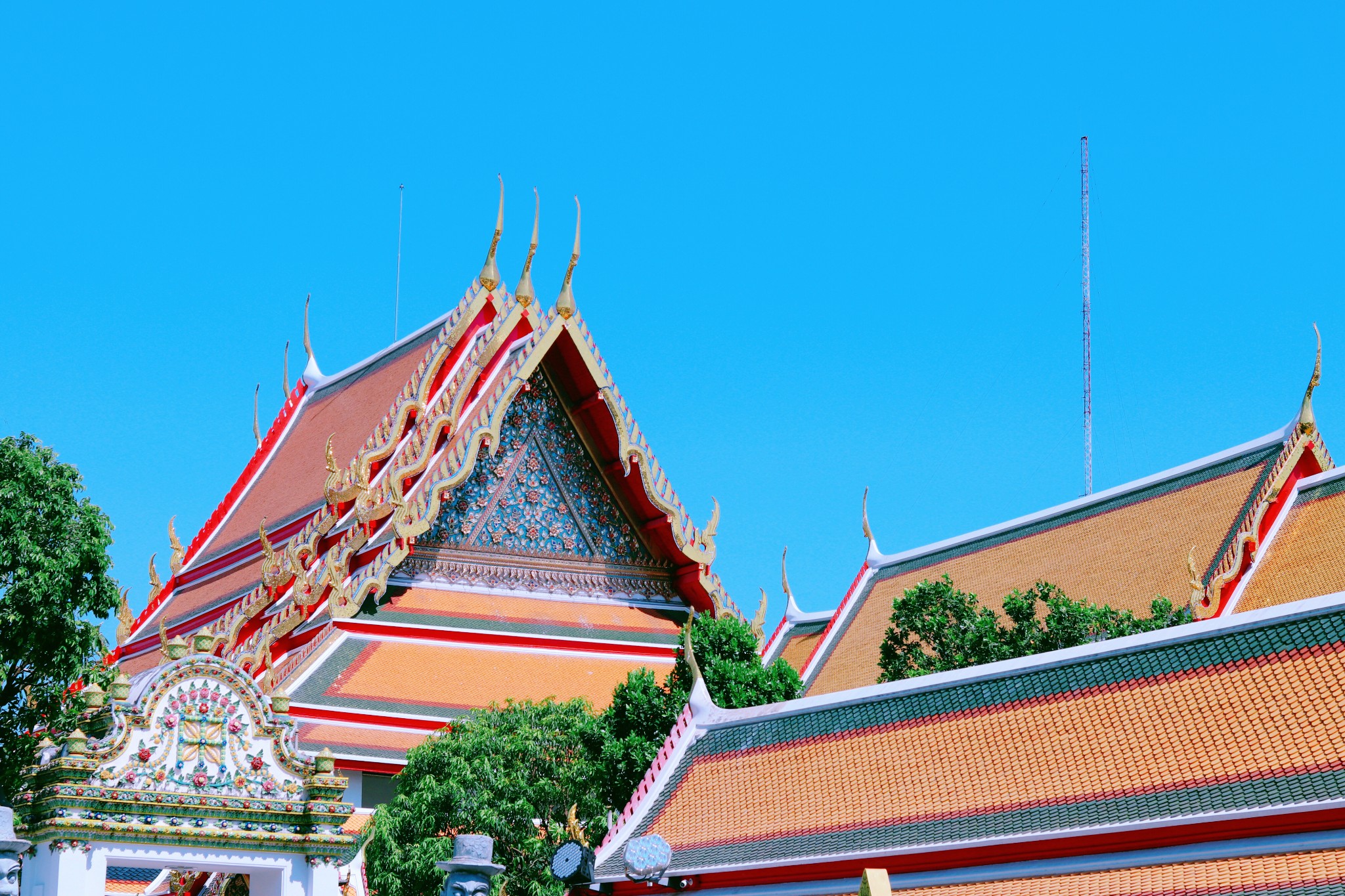 卧佛寺与大皇宫相隔很近,沿着街道走10分钟左右就能到 卧佛寺是 曼谷 最古老的寺庙 寺中有着世界最大的一尊卧佛,佛像长46米,是 曼谷 市内最大卧佛,几乎占据了整个大雄宝殿的空间 寺中的大小佛塔近百余座,也有“ 塔林 ”之称 这里的颜色、建筑风格非常适合拍照