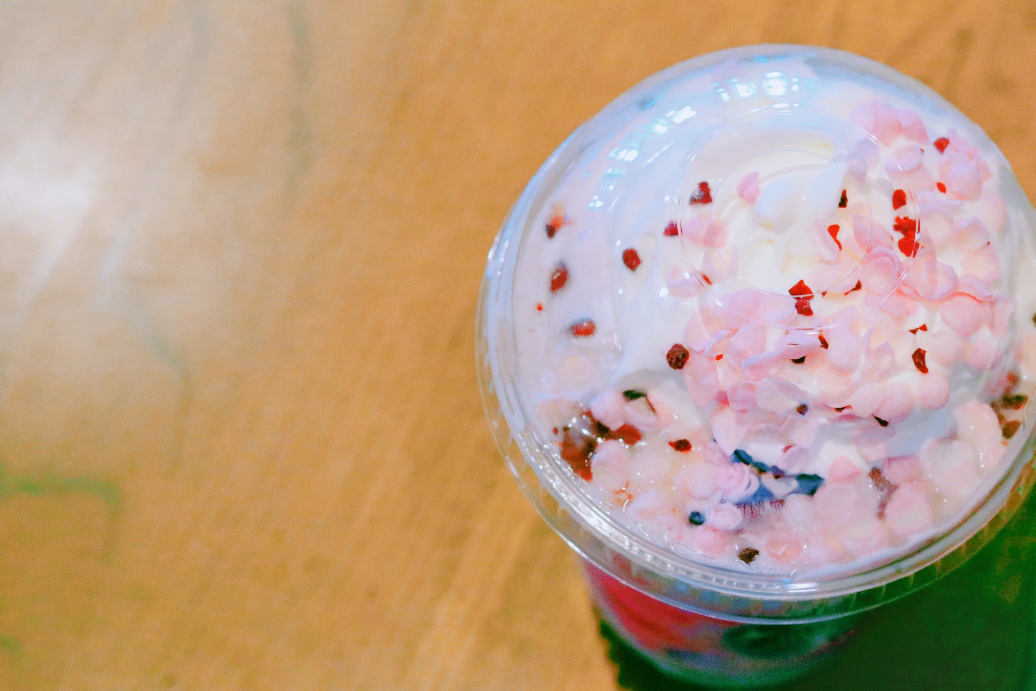 逛了很久,遇见一家星巴克,走进去,乘凉,歇息。 这杯樱花口味的饮品在国内没有得到过,口味很甜,但不腻。