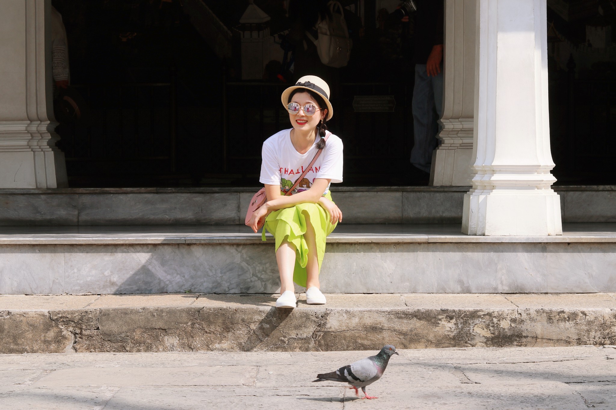 大皇宫的游览,如果人少,可能半个小时-1个小时就能逛完+拍照,但因为人多,我们花了差不多2小时才走出来。 大皇宫出来,是一条很悠闲的街道 贩卖的小商,惬意的鸽子,还有烈日下或急促或随意的游人