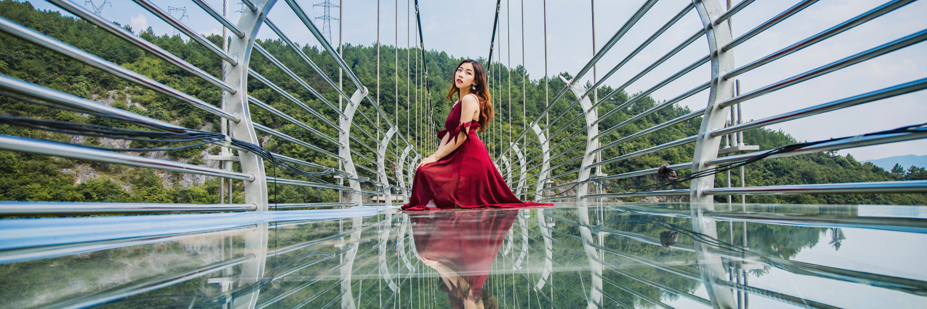 来都来了!还是要多拍几张照片的,不然怎么炫耀我走了这么酷的桥。 如果想要体现出玻璃桥的特色,建议可以蹲下来拍,借助玻璃的反光,可以得到倒影的效果,还可以有效挡住背后的其他游客,可以说是一举两得。