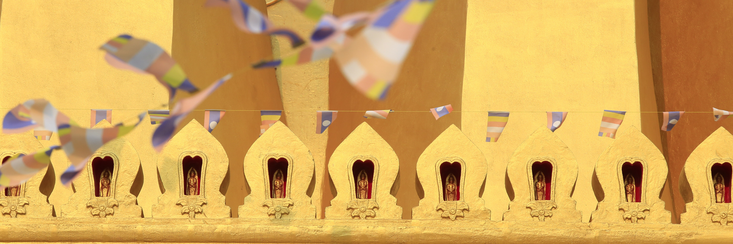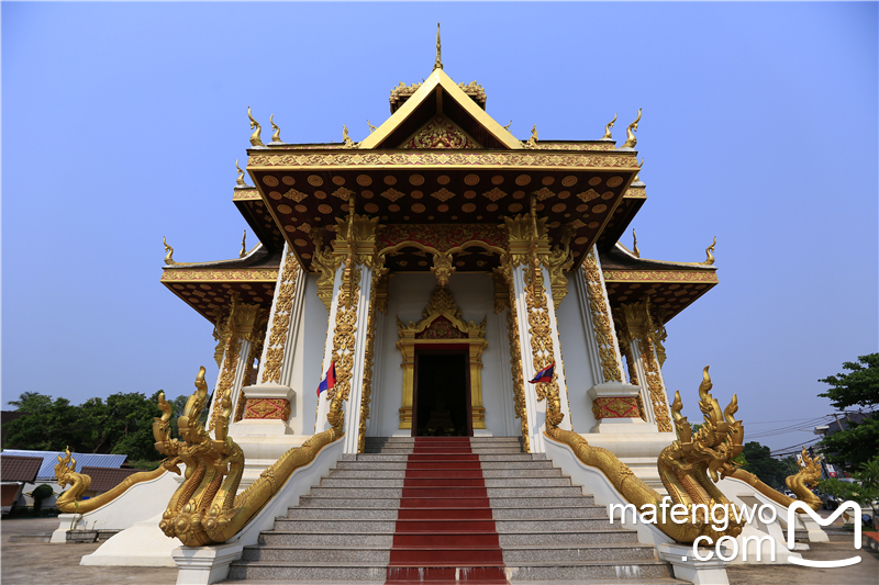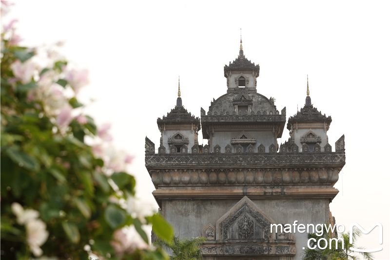 万象 凯旋门Patuxay Monument 万象 凯旋门位于市区正中心,是为纪念 老挝 人民解放独立而建。虽然远看外型与 法国 的凯旋门有些类似,也同样连接最繁华的大街,但其规模相对较小,并且上面雕刻的都是佛像及神话故事中的人物等。门总共有七层,一至四层是室内,三四层有销售纪念品的店铺;五六层是室外,可以看到市区的景色;第七层也是室内,空间非常小,可以从窗户眺望外面的景色,窗框的设计非常有趣。凯旋门前方有一个由 中国 援建的音乐喷泉广场,广场喷泉会定时开放。 我们没有上去凯旋门,只是在喷水池附近拍拍照。当我举起大炮拍照时,可能太招摇了,感觉前面有两个疑似小偷向我走来,好在我们包了车,立马上车走人,哈哈感觉挡过了一劫。 【地址】 老挝 首都 万象 市中心 【交通】凯旋门位于 老挝 万象 市中心,步行可达。 【门票】登凯旋门门票:外国游客3000基普;当地人2000基普。 【开放时间】 凯旋门开放时间:周一至周五8:00-16:30、周六周日8:00-17:00; 广场喷泉开放时间为周一至周五18:00-20:00、周六周日全天