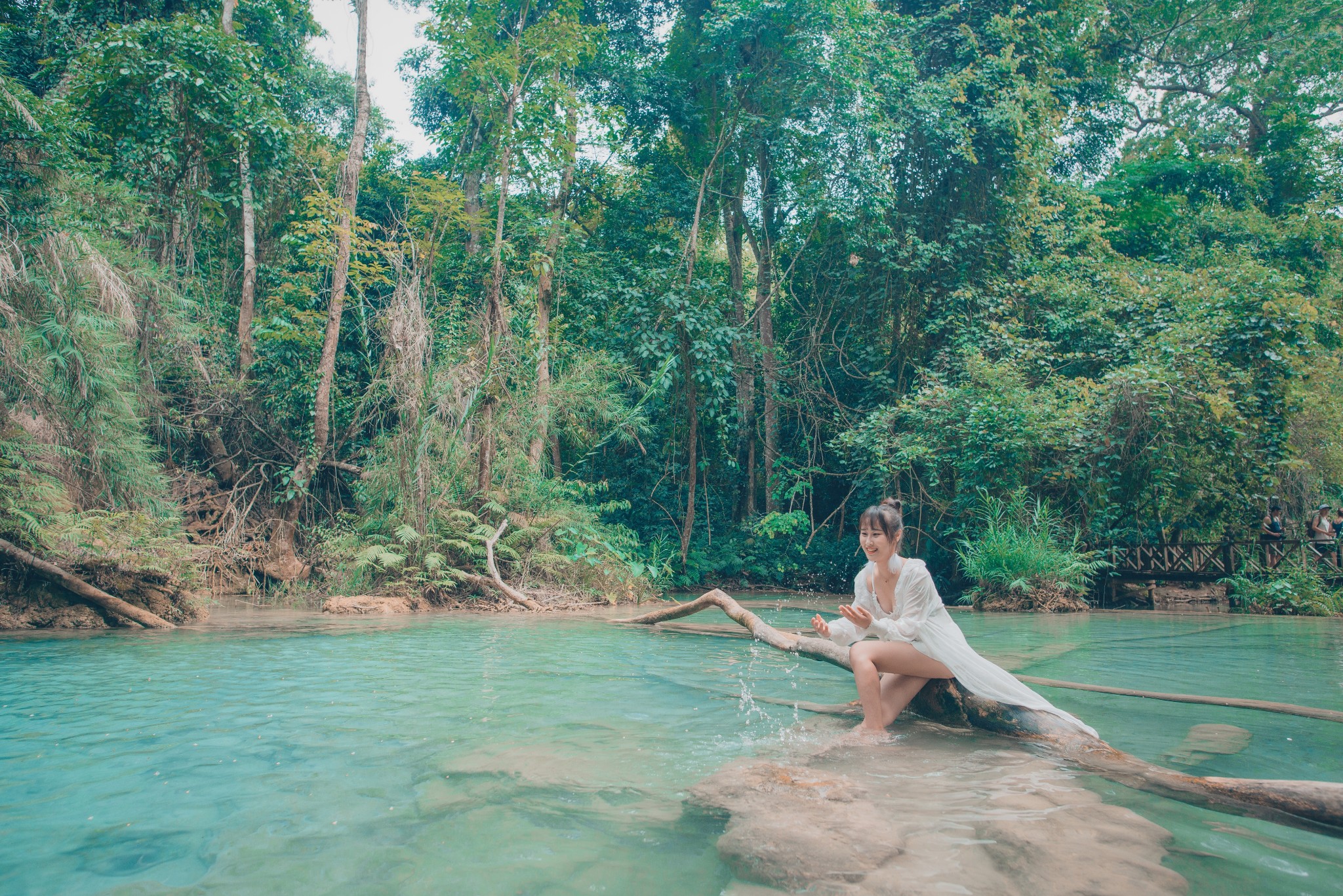 这个树干从中午开始就会有非常多的人排队,而且那会儿水池里全都是玩水的人,拍出来背景一片混乱。建议一早来光西瀑布,首先趁没人的时候拍这里哦~
