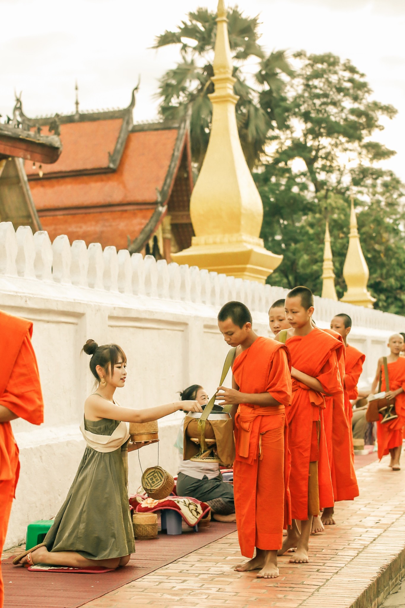布施是 老挝 人一天中最重要的事情,而 琅勃拉邦 的每个静谧的清晨就是由布施掀开的。随着僧人走向大街小巷寻求布施,整个城市也会因此苏醒,千百年来,风雨无阻。